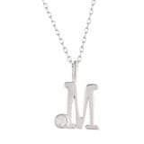 Sterling Silver Alphabet M Round Cut CZ Pendant