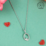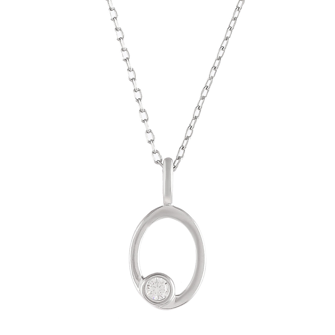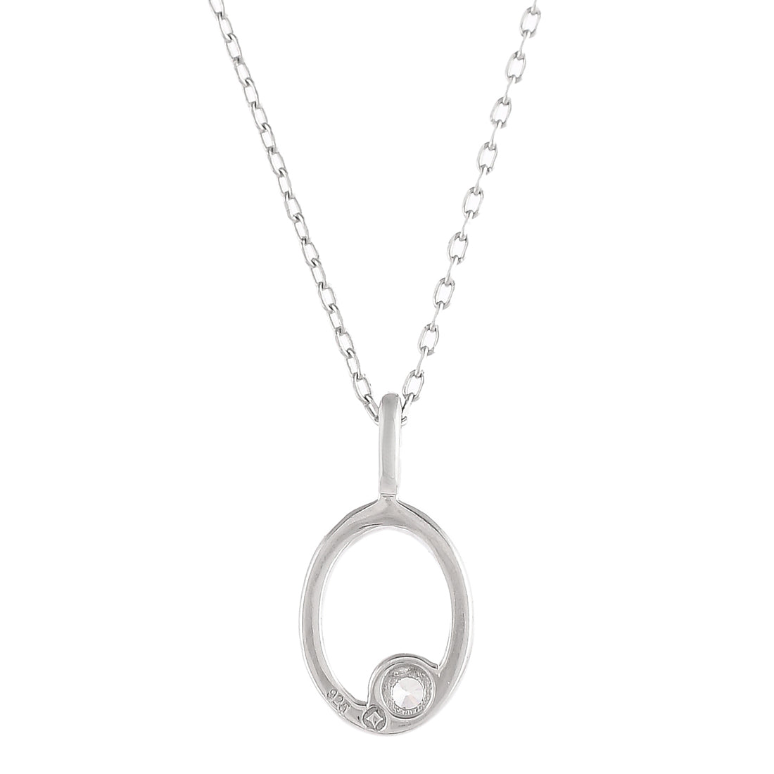 Minimalistic Alphabet O pendant with silver chains,studded with cubic zircons.Crafted in 925 Silver with a High Polish Finish .