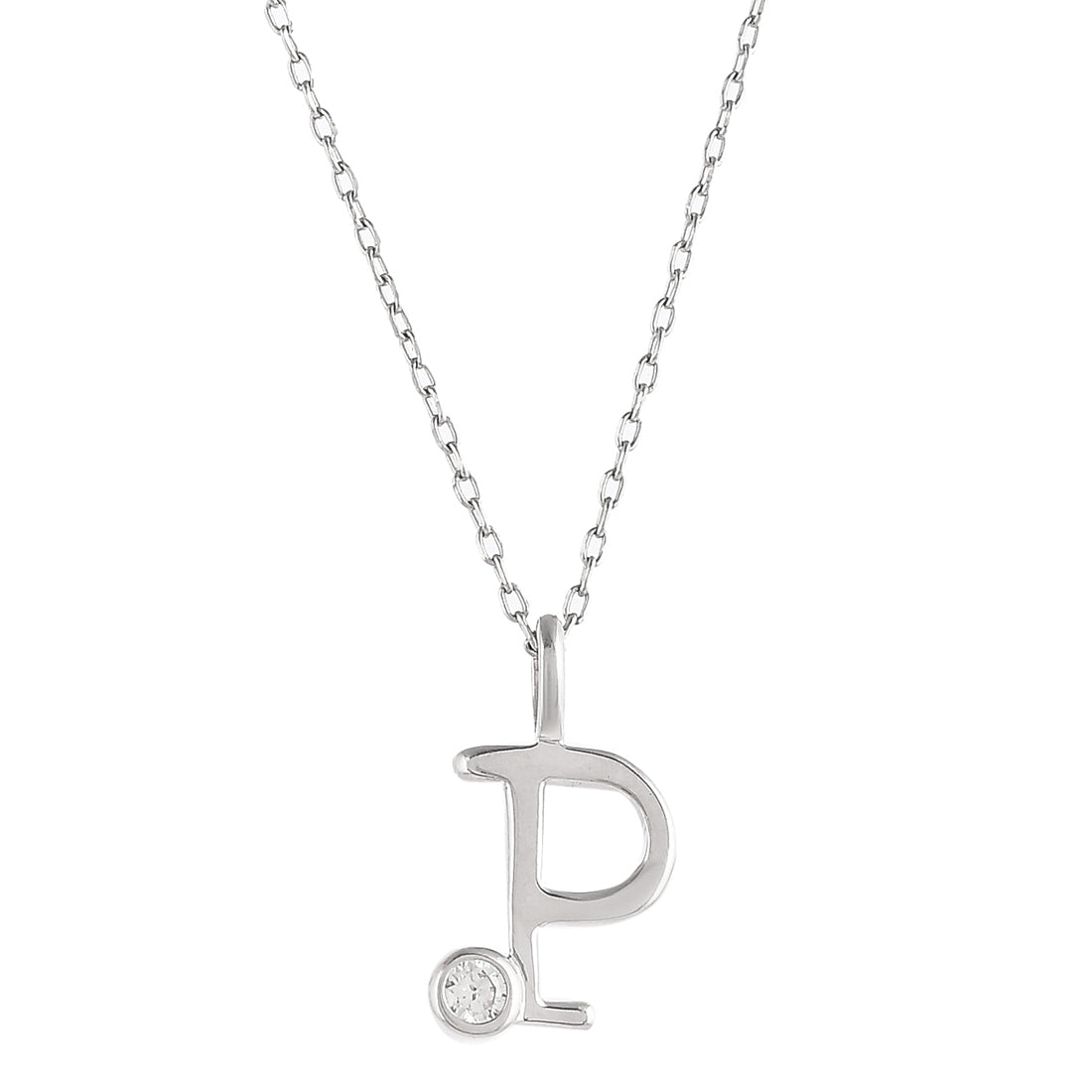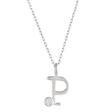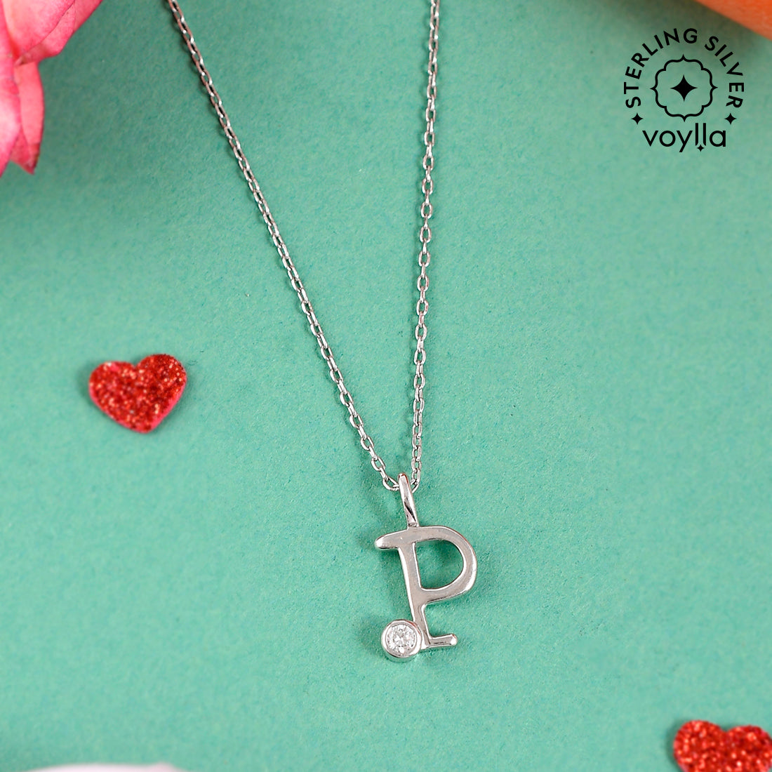 Minimalistic Alphabet P pendant with silver chains,studded with cubic zircons.Crafted in 925 Silver with a High Polish Finish .