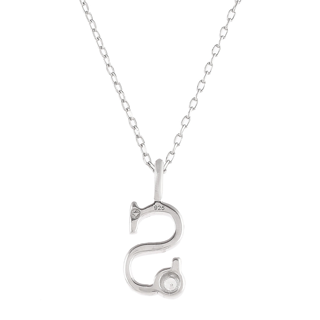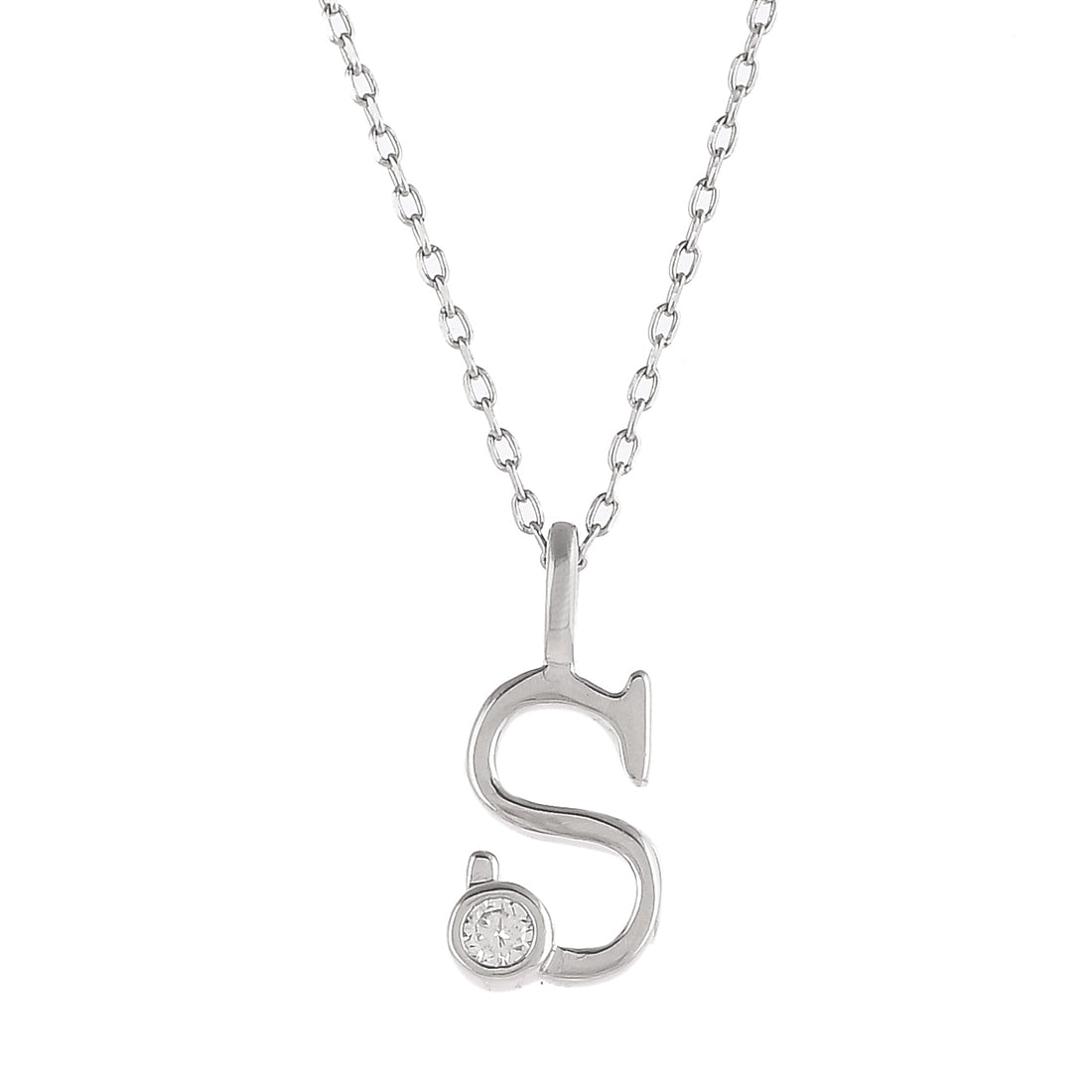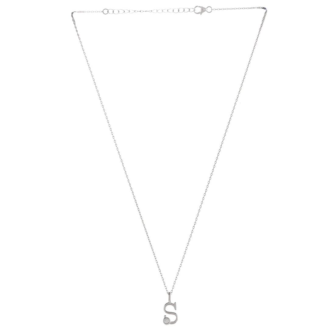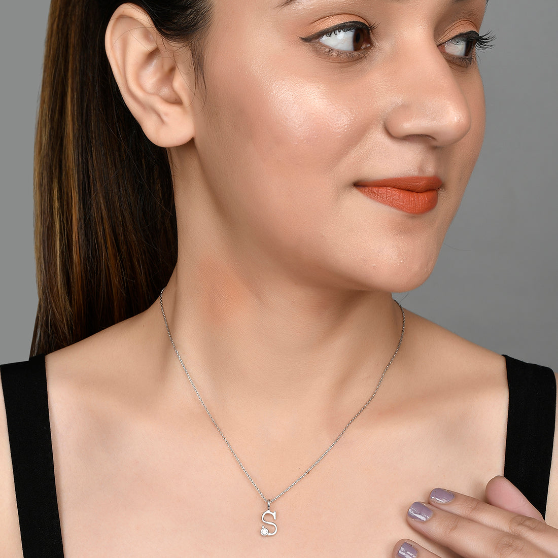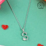 Minimalistic Alphabet S pendant with silver chains,studded with cubic zircons.Crafted in 925 Silver with a High Polish Finish .
