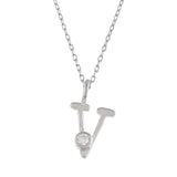 Sterling Silver Alphabet V Round Cut CZ Pendant