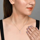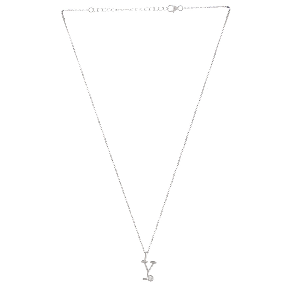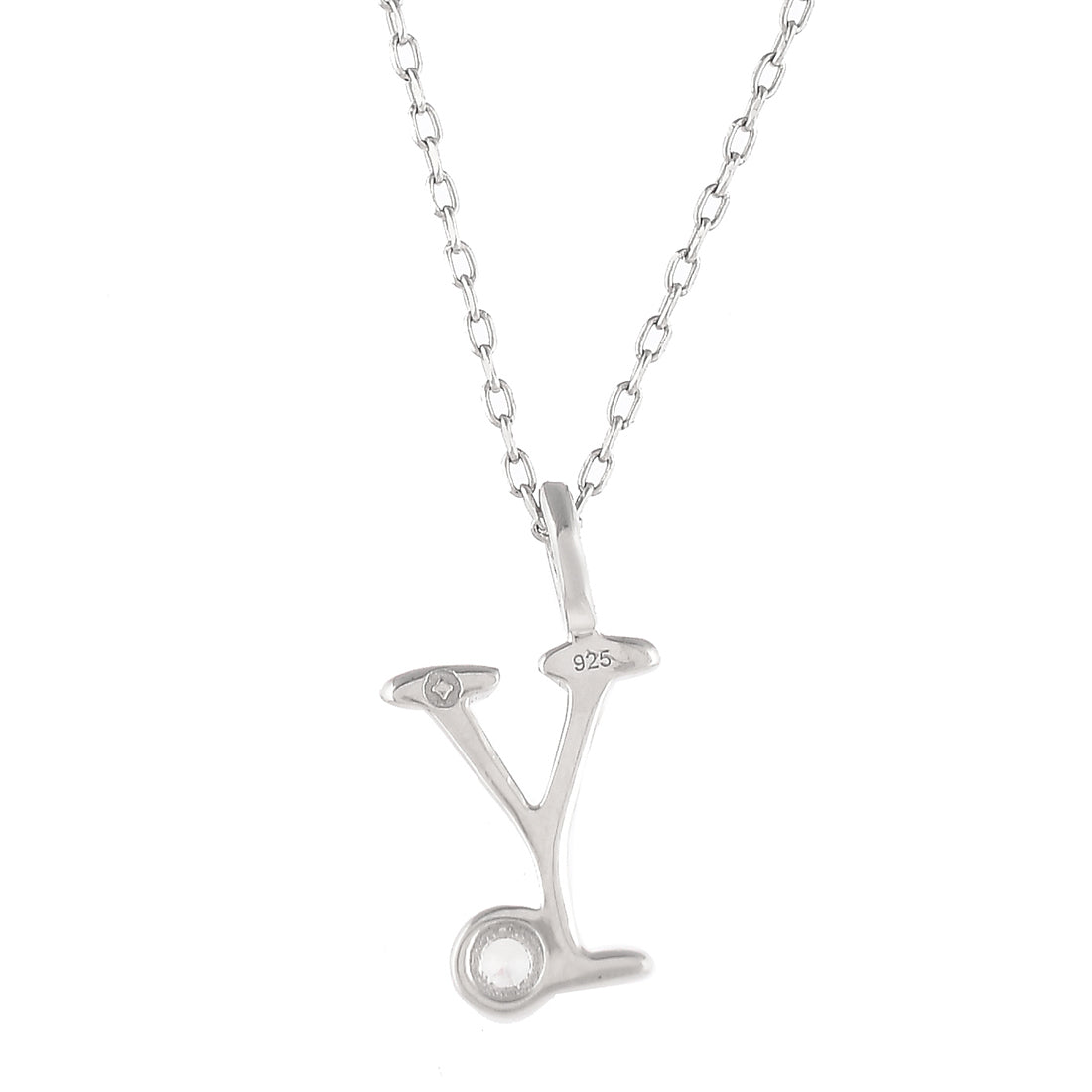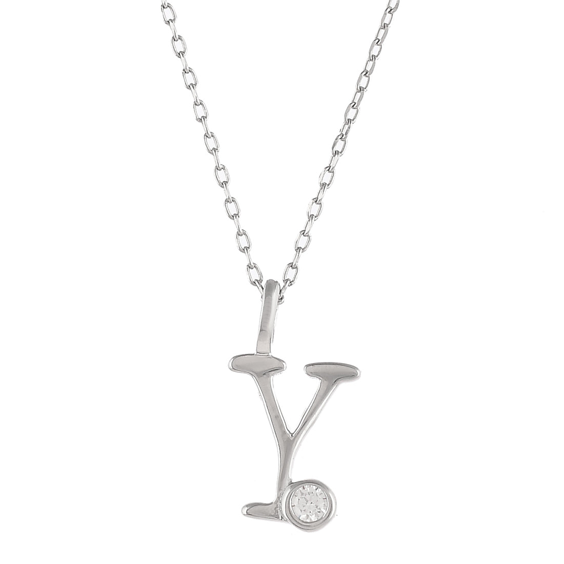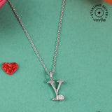 Minimalistic Alphabet Y pendant with silver chains,studded with cubic zircons.Crafted in 925 Silver with a High Polish Finish .