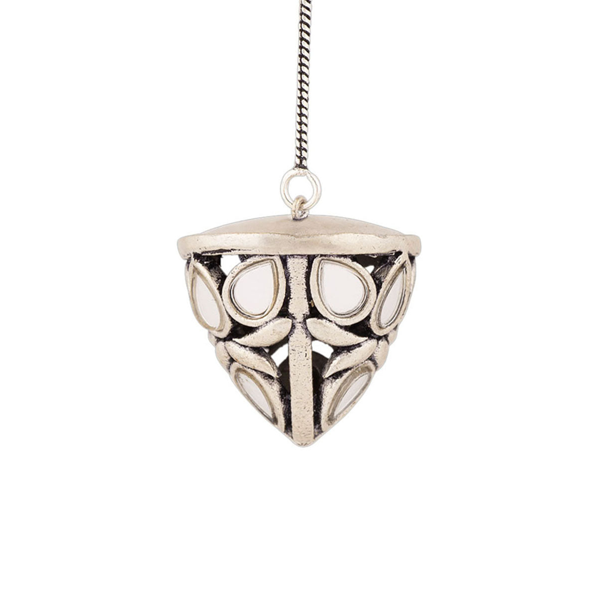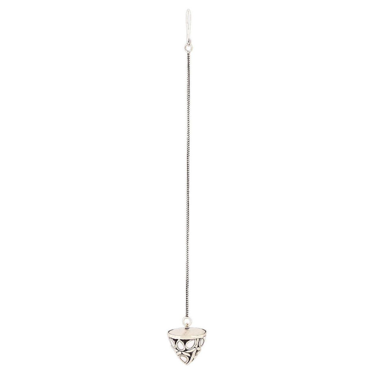 Ethnic style maang tika inspired by the beauty of the Sheesh Mahal. Embellished with mirror details, the oxidized silver plated tika will look splendid when paired with a traditional saree. This piece of jewelry comes with the Voylla assurance of quality and durability.