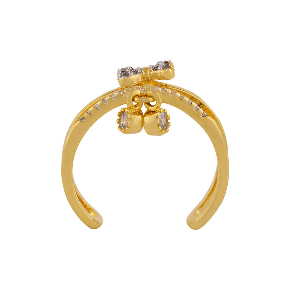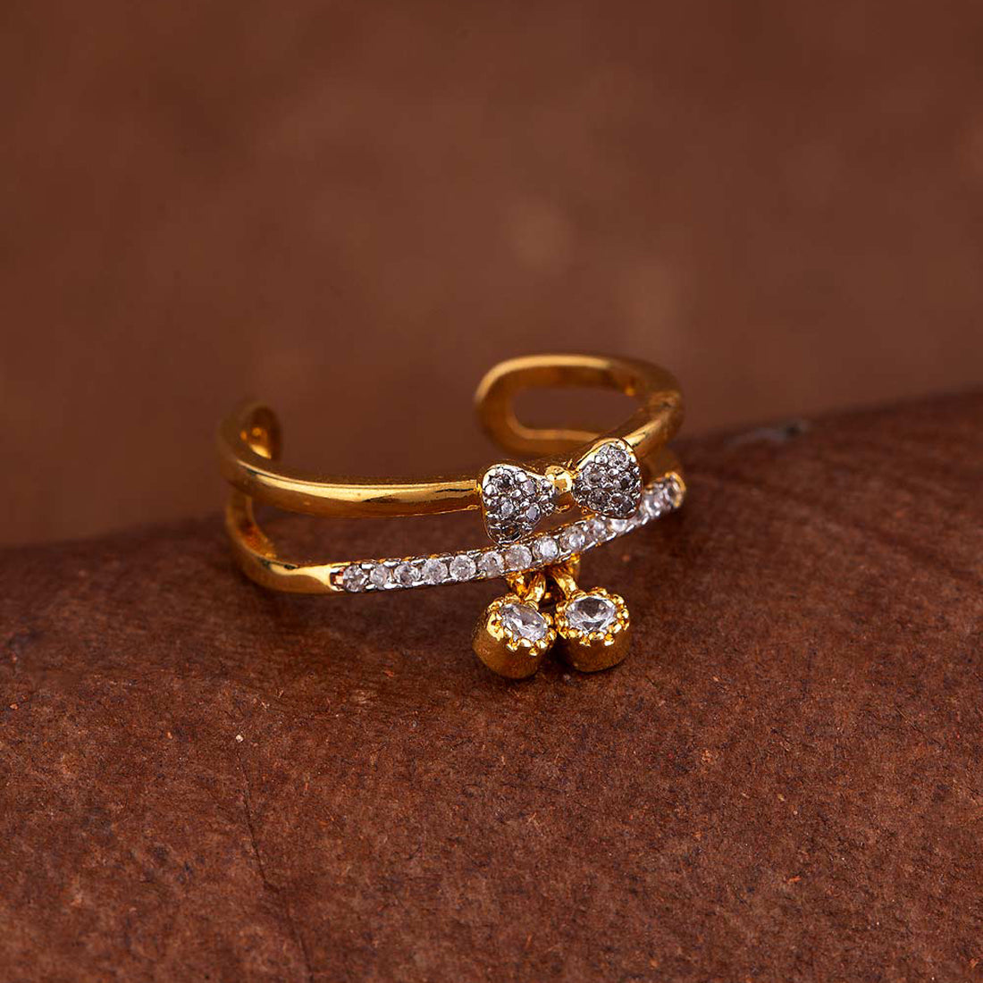 Gemstones studded bow motif adorned ring. Fashioned out of brass and two tone plated. Wear with a summer dress.