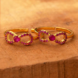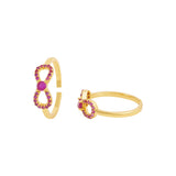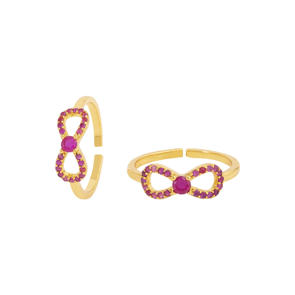 Adjustable bow motifs toe rings fashioned out of brass. Yellow gold plated and CZ gems adorned. Pair with casual attire.