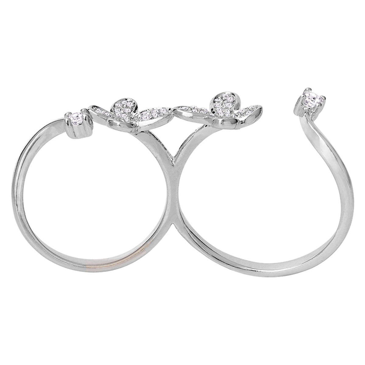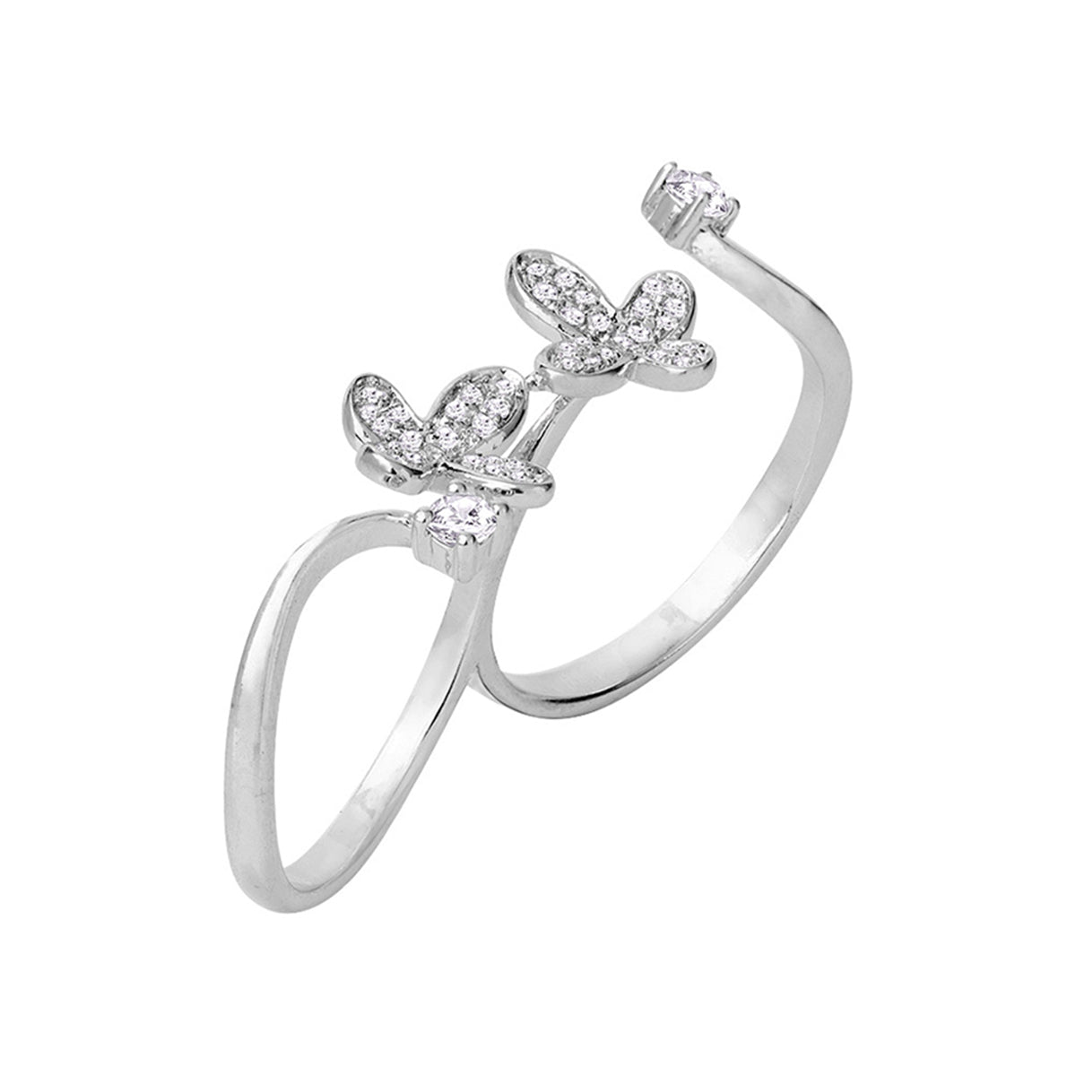 American Diamond Butterfly Double Finger Ring