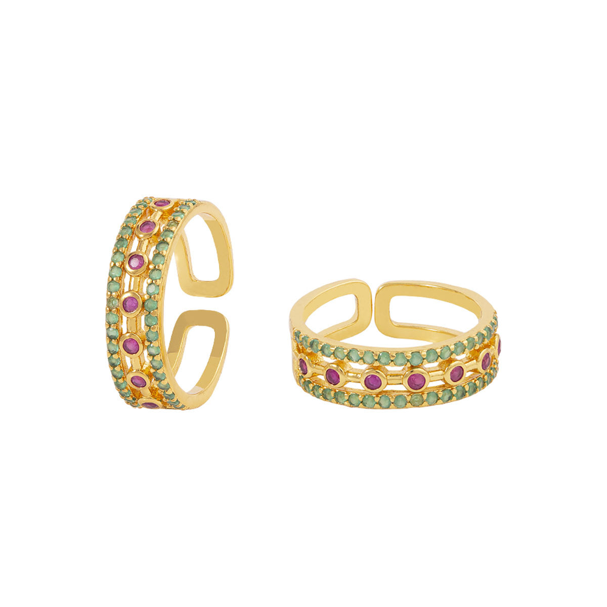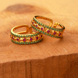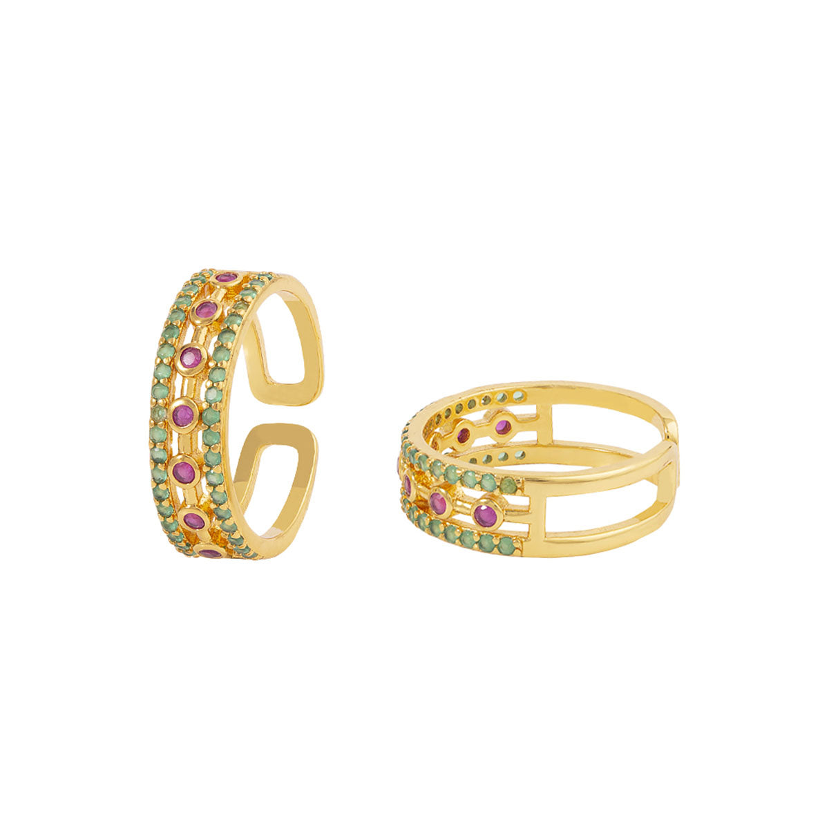 Adjustable coloured CZ gems adorned brass toe rings. Yellow gold plated, comfortable and good for everyday wear.