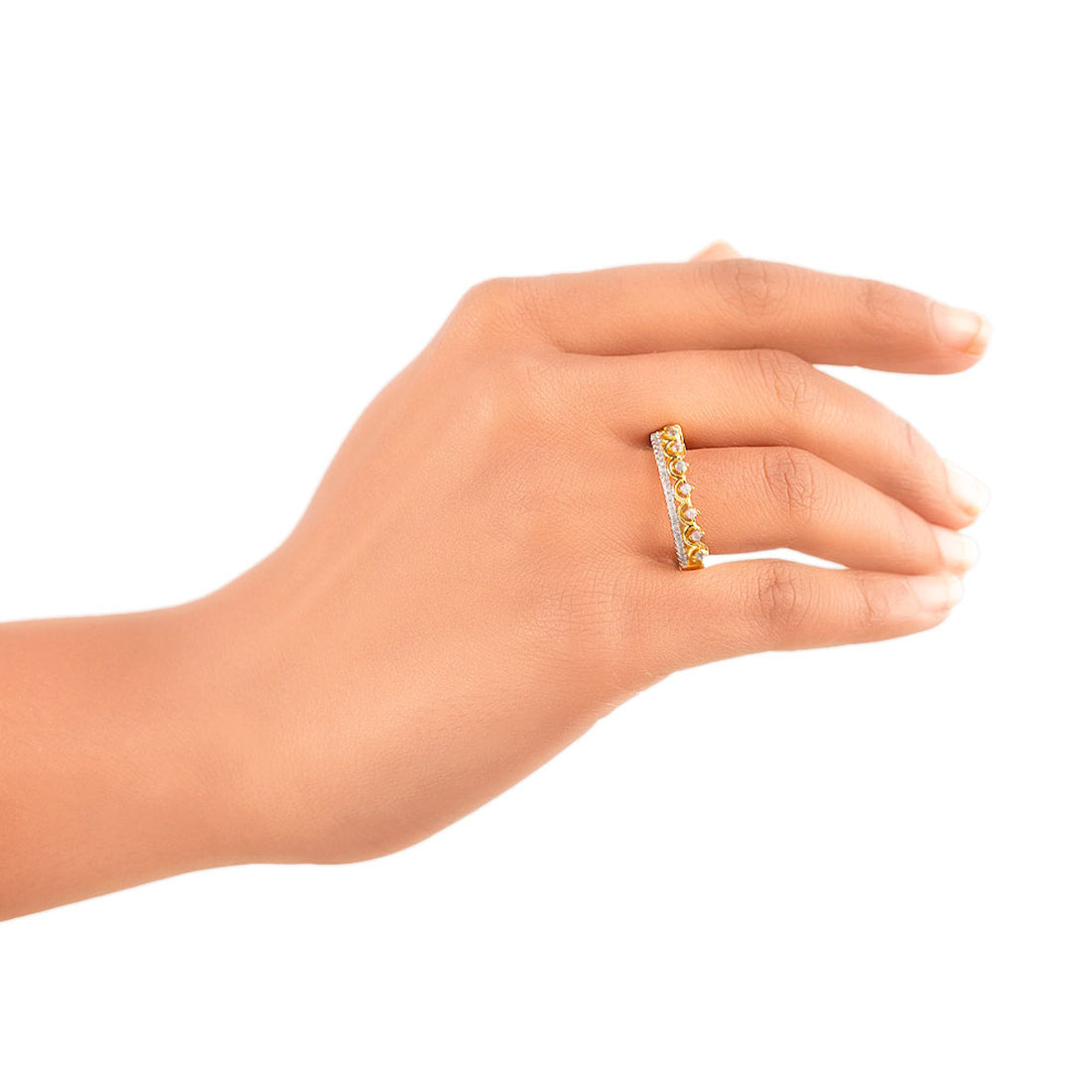 Crown ring with cubic zirconia gems. Made from brass, two tone plated and perfect for everyday wear.