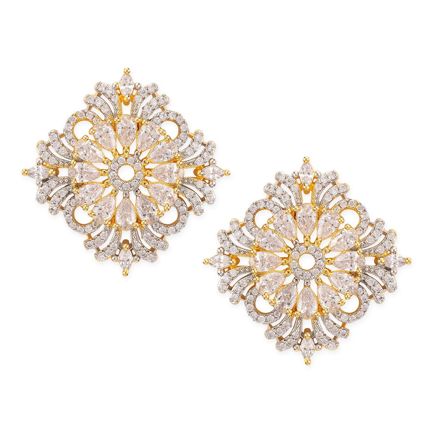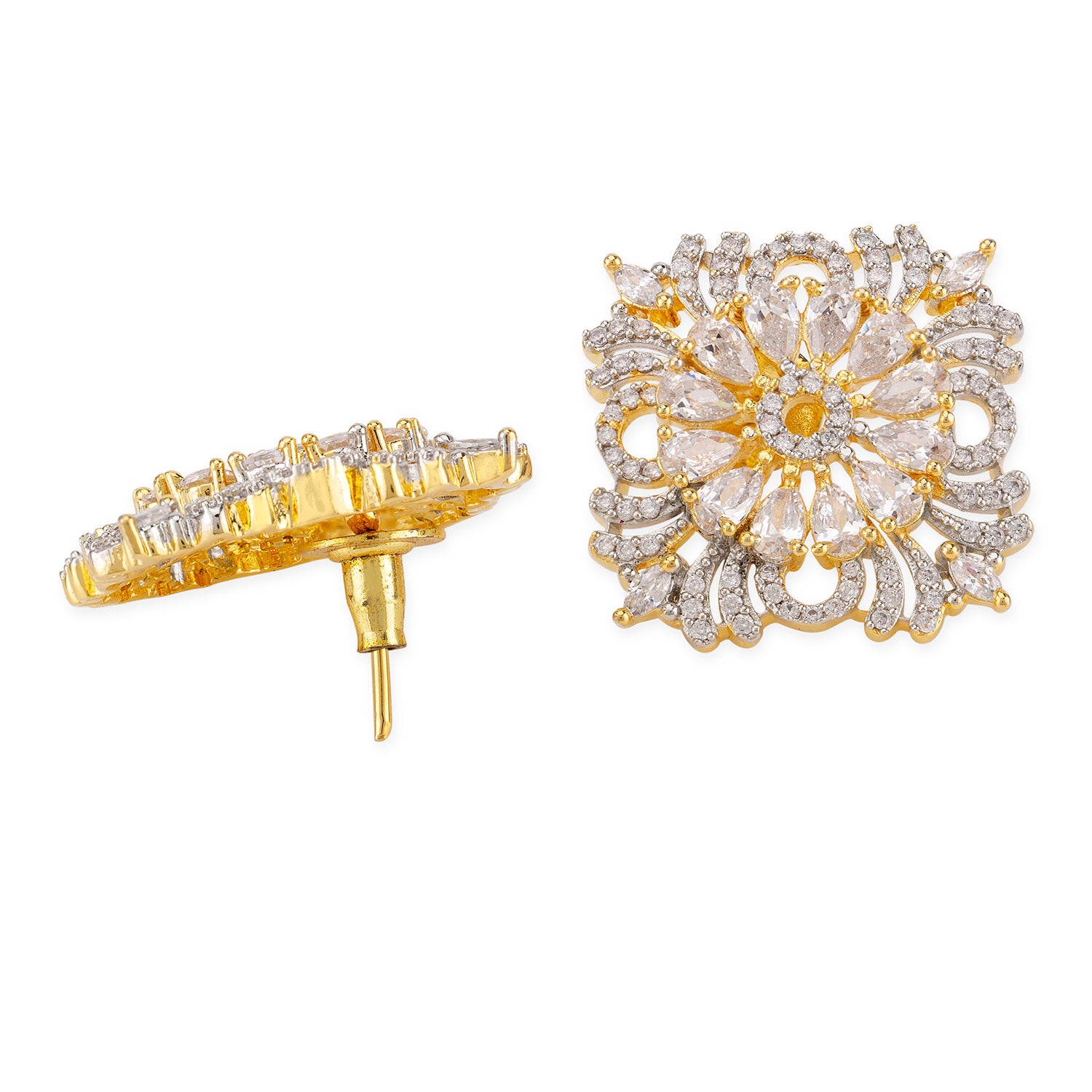 American Diamond CZ Gold Plated Brass Stud Earrings