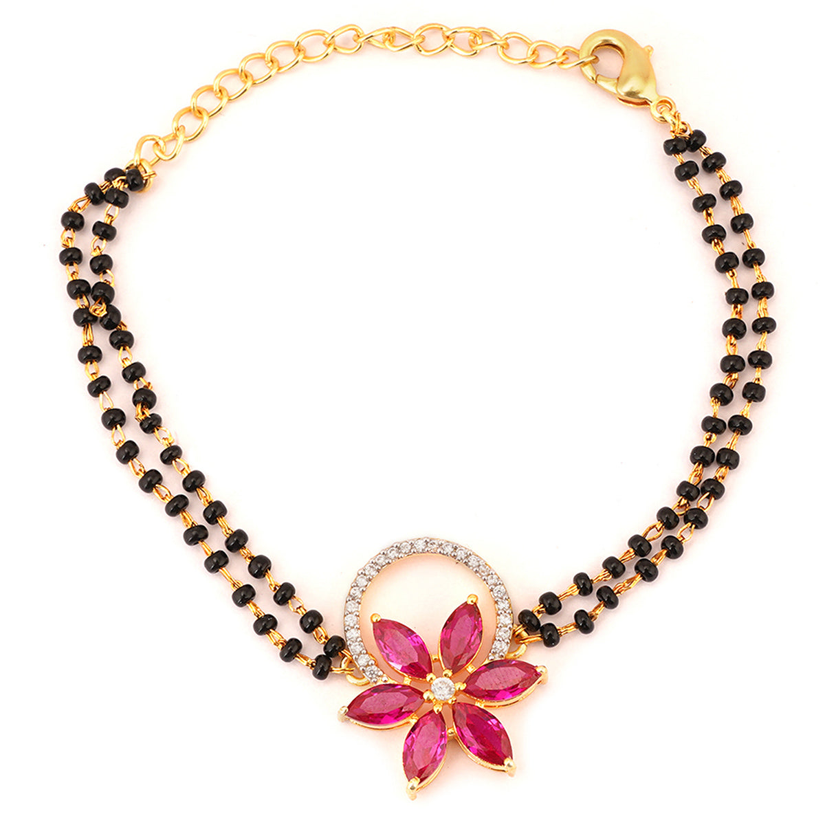 American Diamond CZ Gold Plated Red Leaf Mangalsutra Bracelet