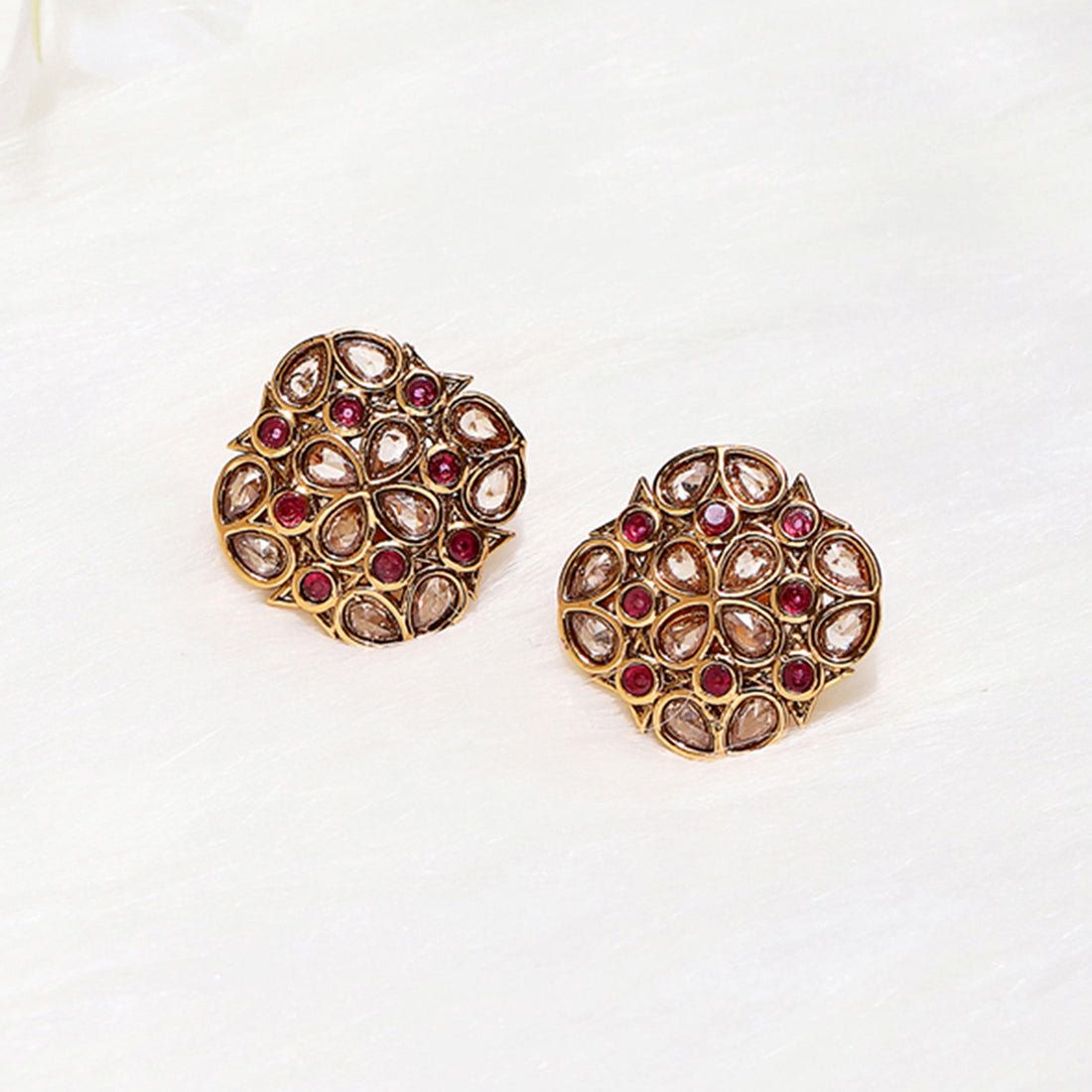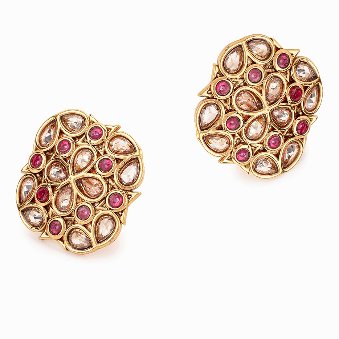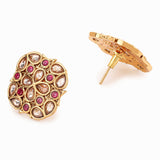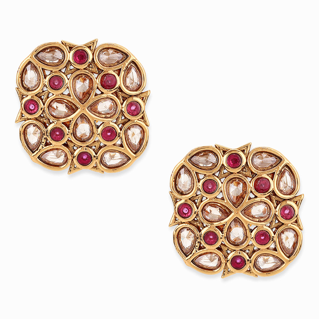 American Diamond CZ Gold Plated Square Cut Brass Stud Earring
