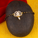 Shimmering Floret CZ Golden Round Brass Black Beaded Bracelet
