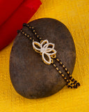 American Diamond CZ Golden Round Brass Black Beaded Mangalsutra Bracelet