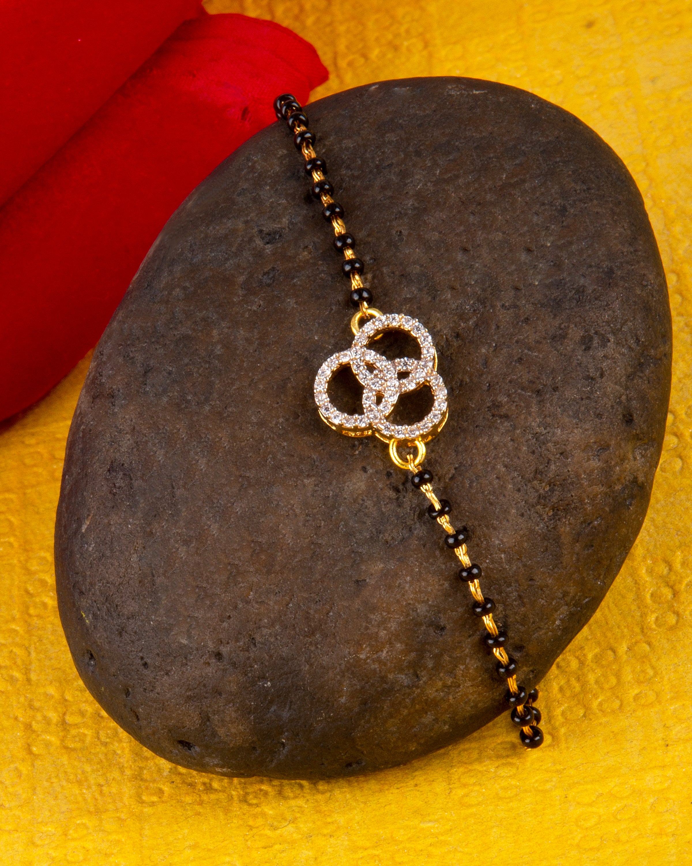 American Diamond CZ Golden Round Brass Black Beaded Mangalsutra Bracelet