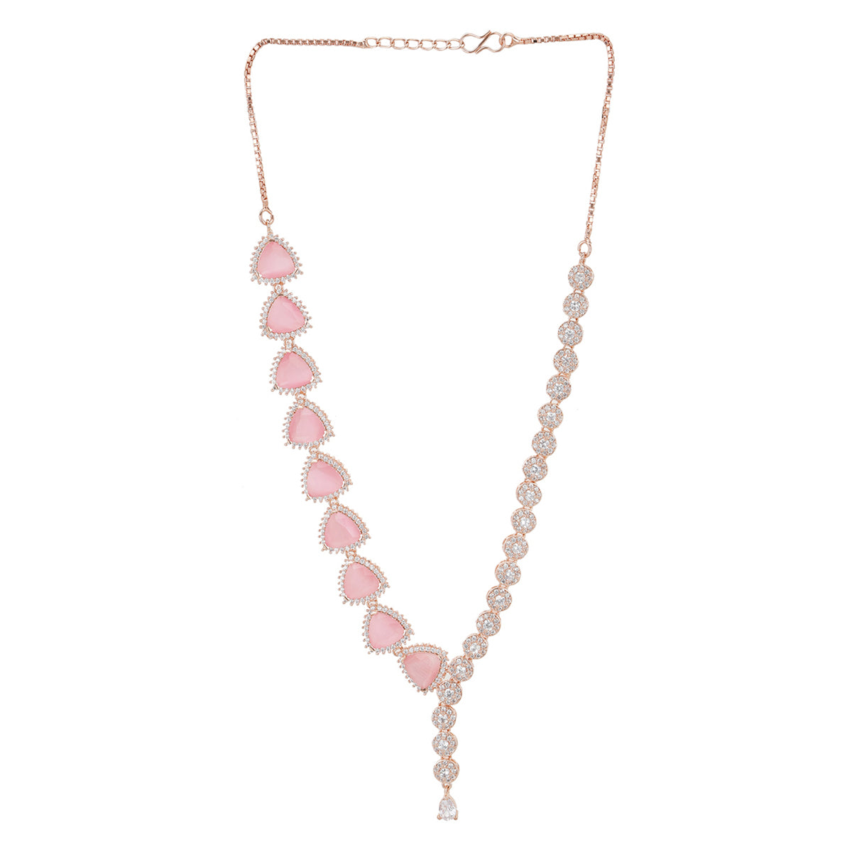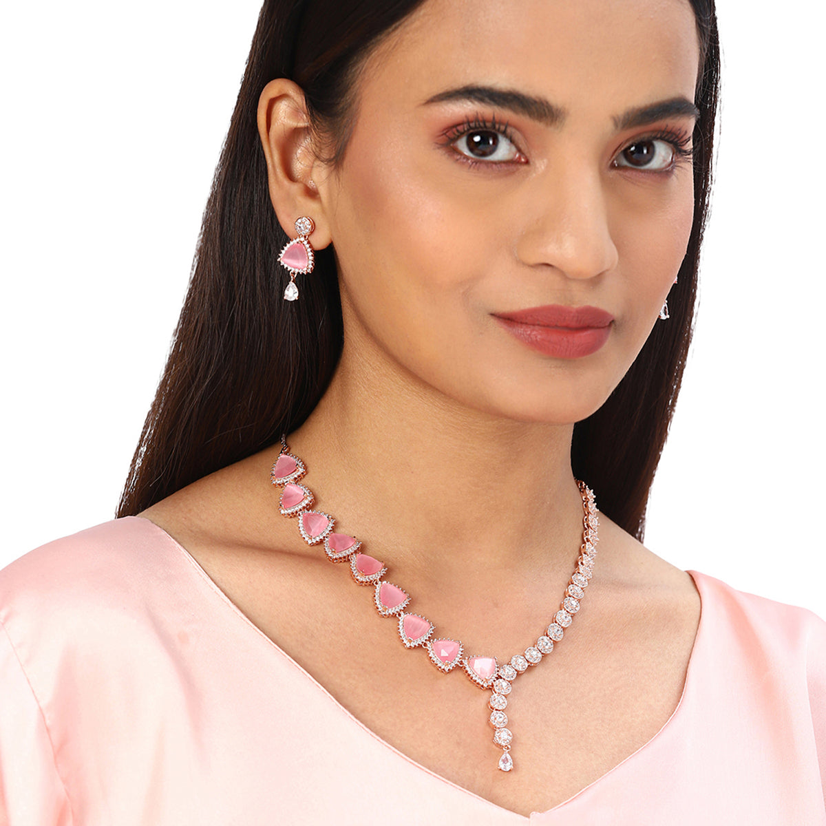 Sparkling Elegance Rose Gold Plated Triangle Cut Jewellery Set