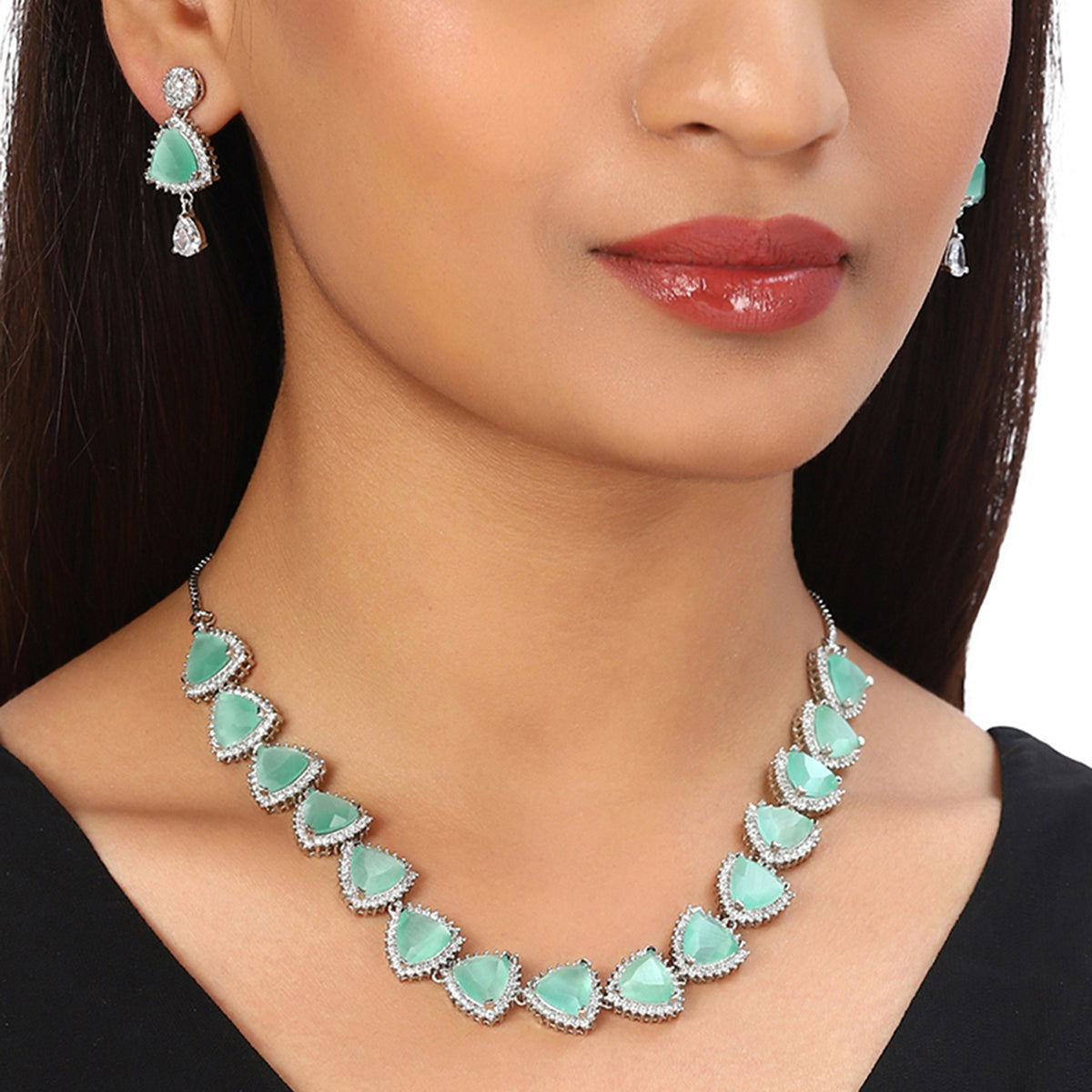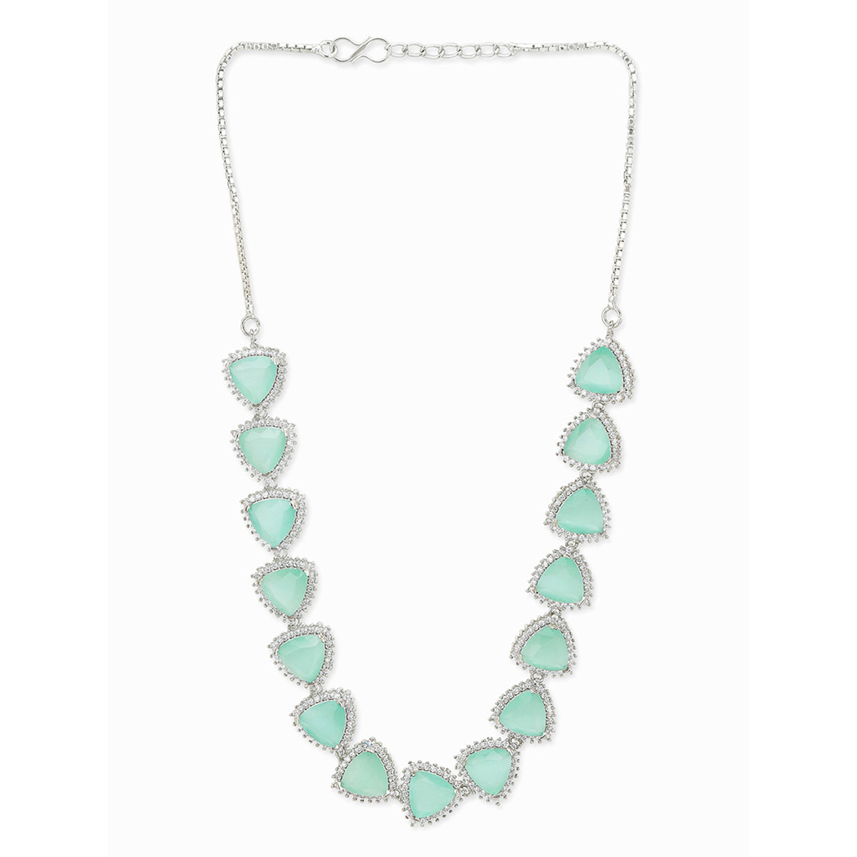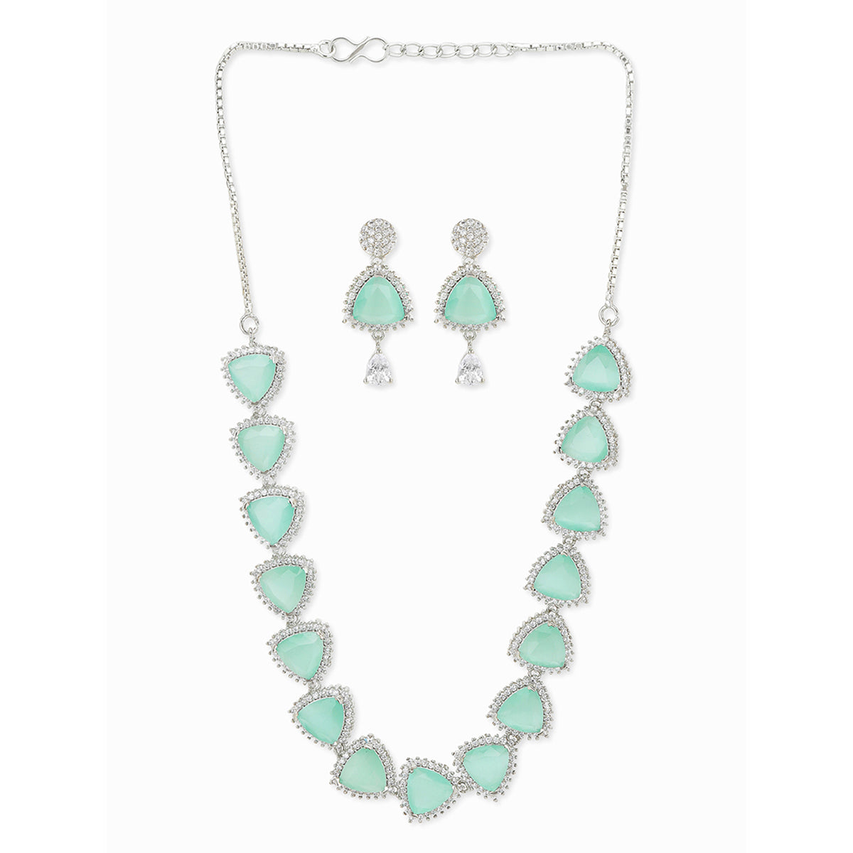 Beauty lies in the Curve and Design and the combination of it gives the product an extra edge. Here comes Voylla's best in class Necklace Sets which are seafoam green in colour with Silver chain. Easy to wear with all outfit.