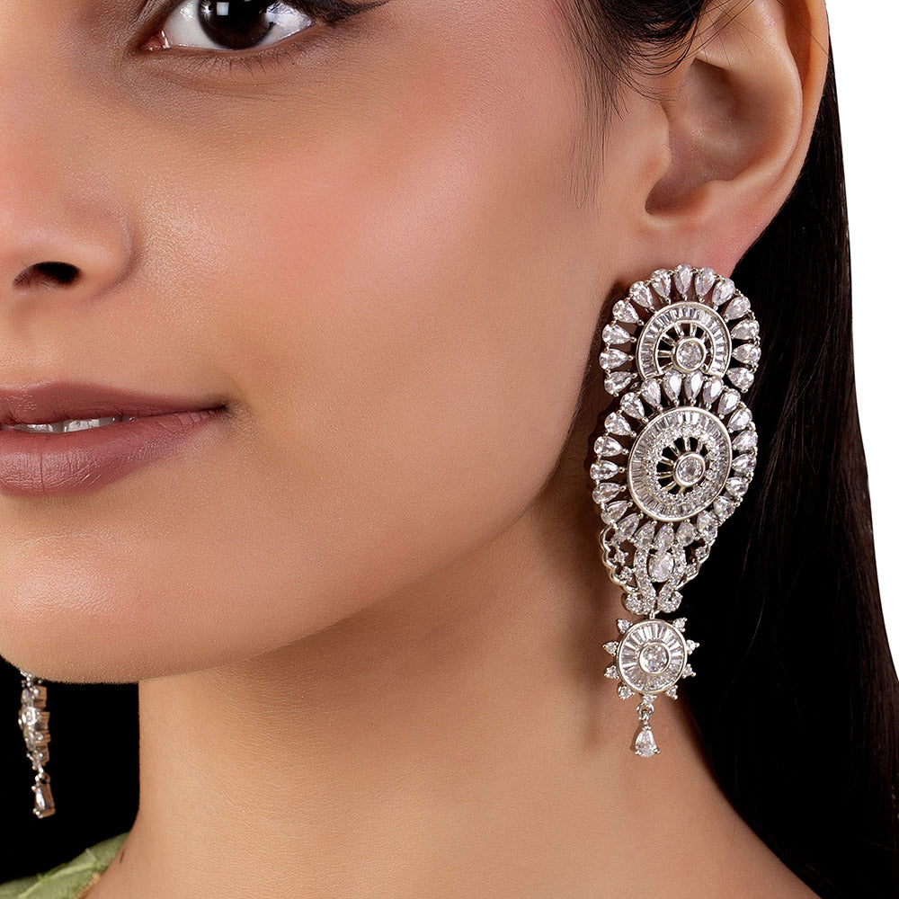 American Diamond CZ Silver Plated Brass Earrings