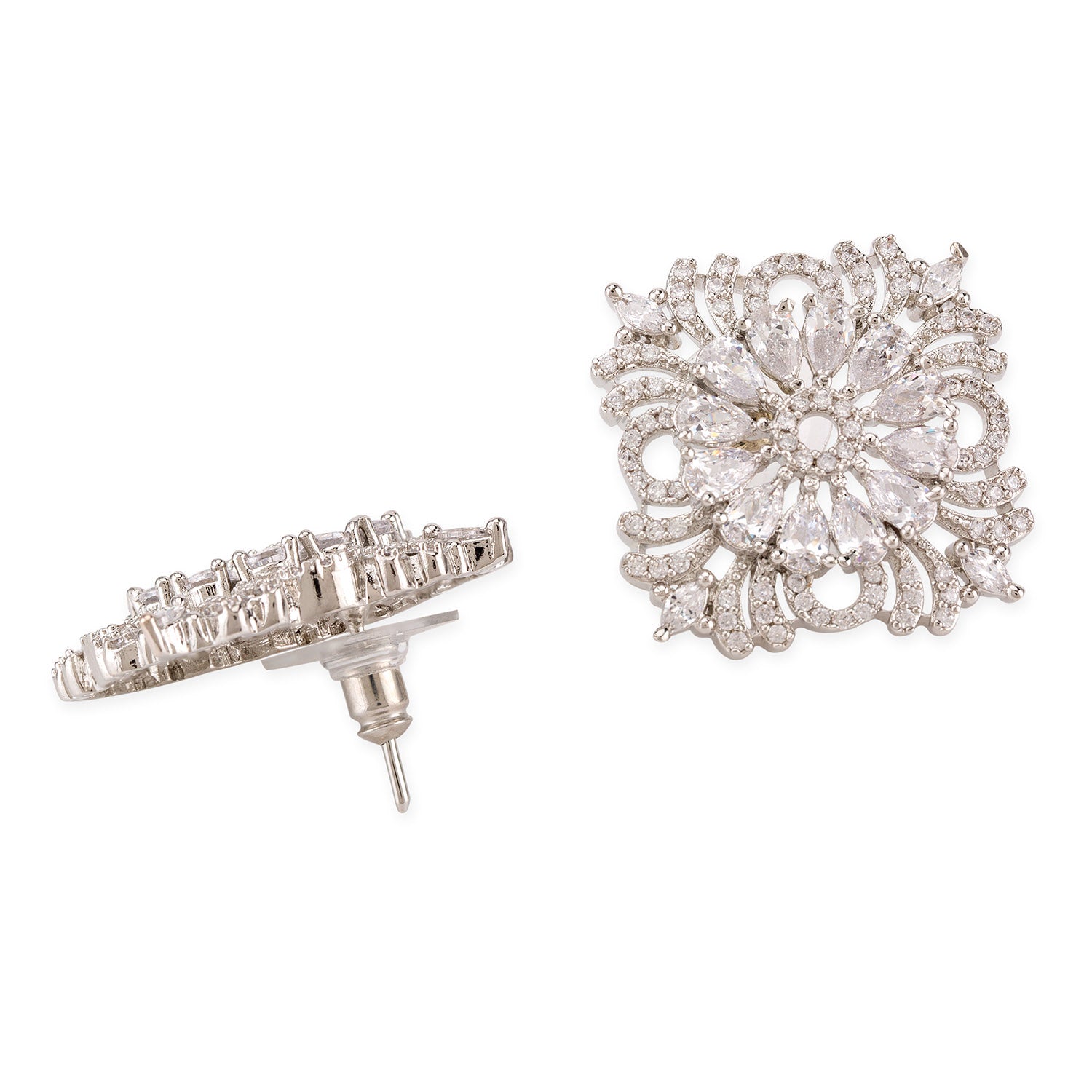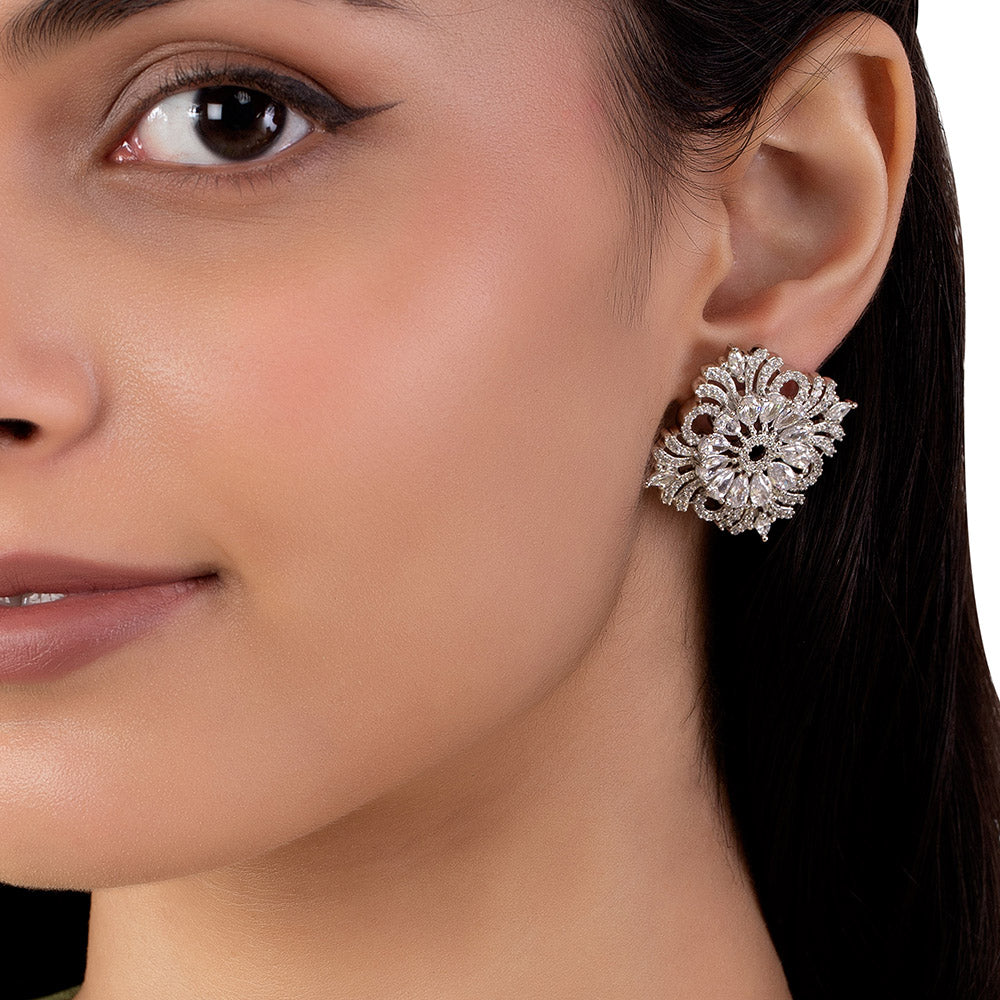 American Diamond CZ Silver Plated Brass Stud Earrings