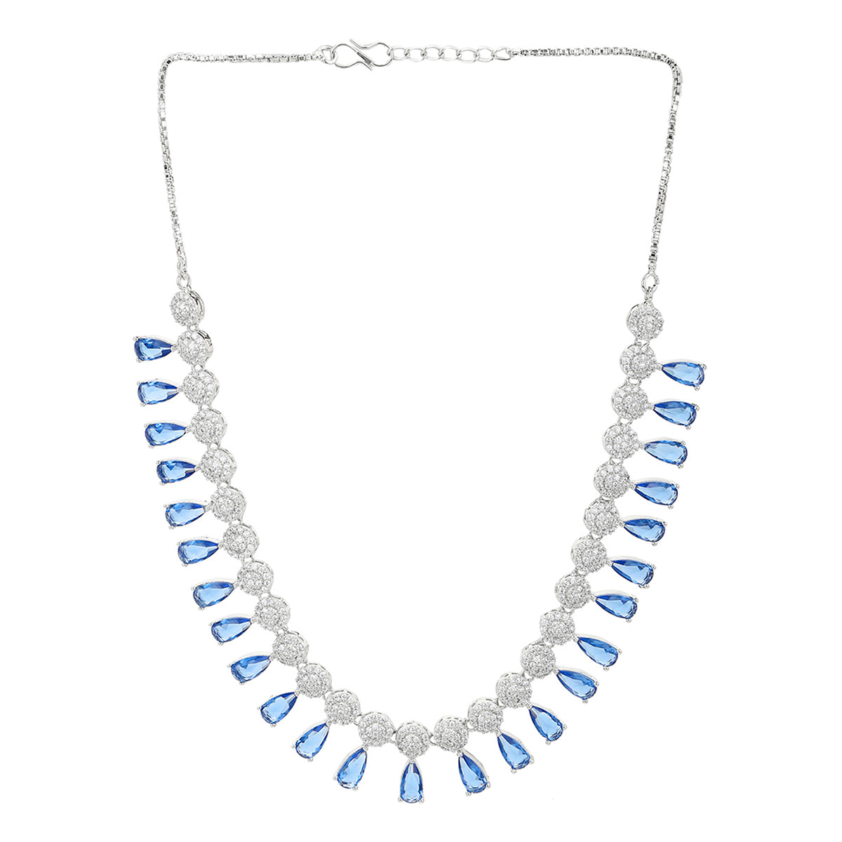 Blue teardrop cut zirconia gemstones jewellery set. Made from brass and silver plated. Lightweight, comfortable and versatile.