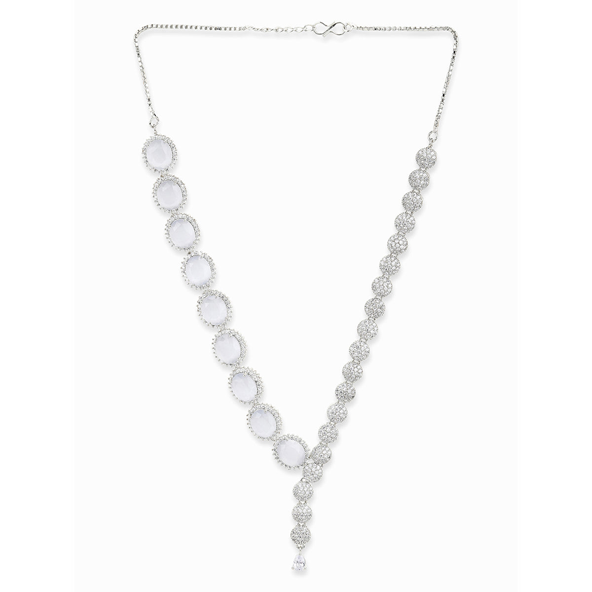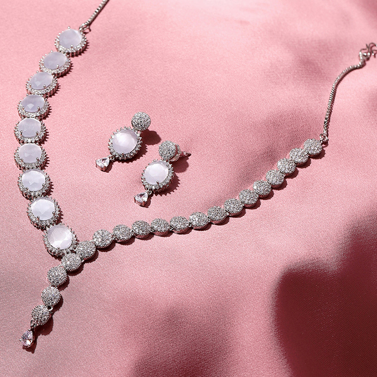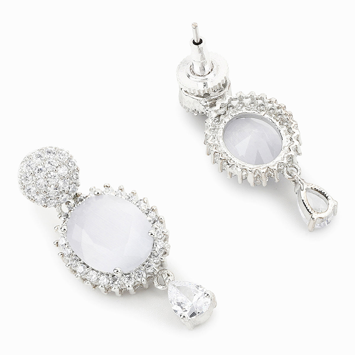 Drop style jewellery set, made from brass and silver plated. Zirconia gemstones embellished. Pair with formal looks.
