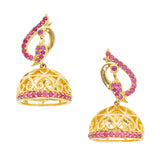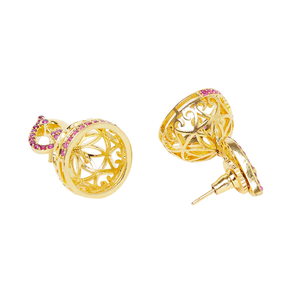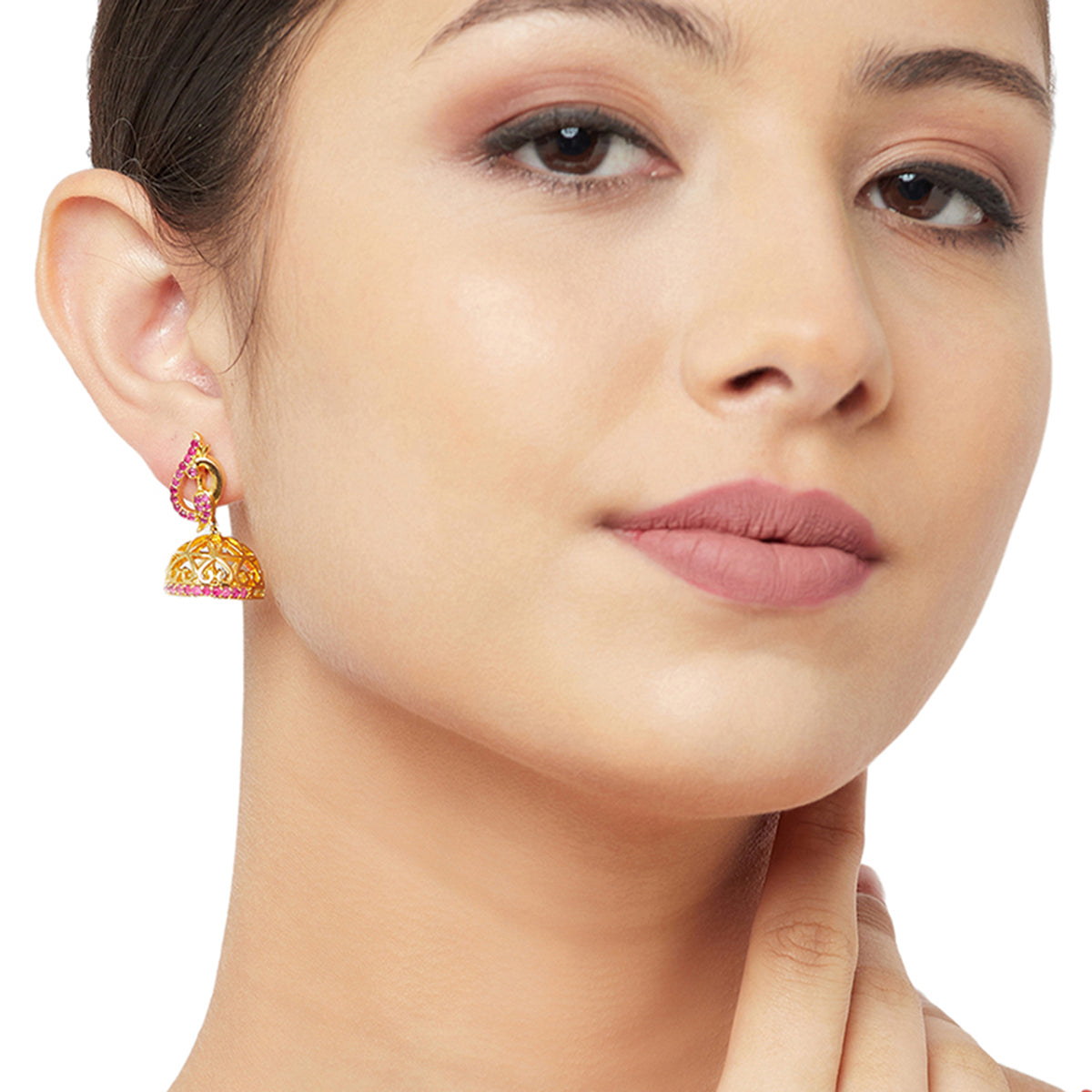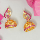 American Diamond CZ Traditional Gold Plated Red Brass Jhumka Earrings for Women