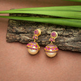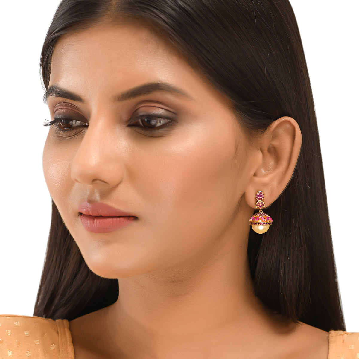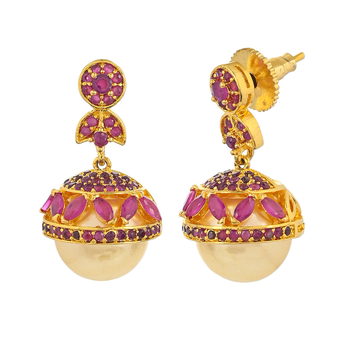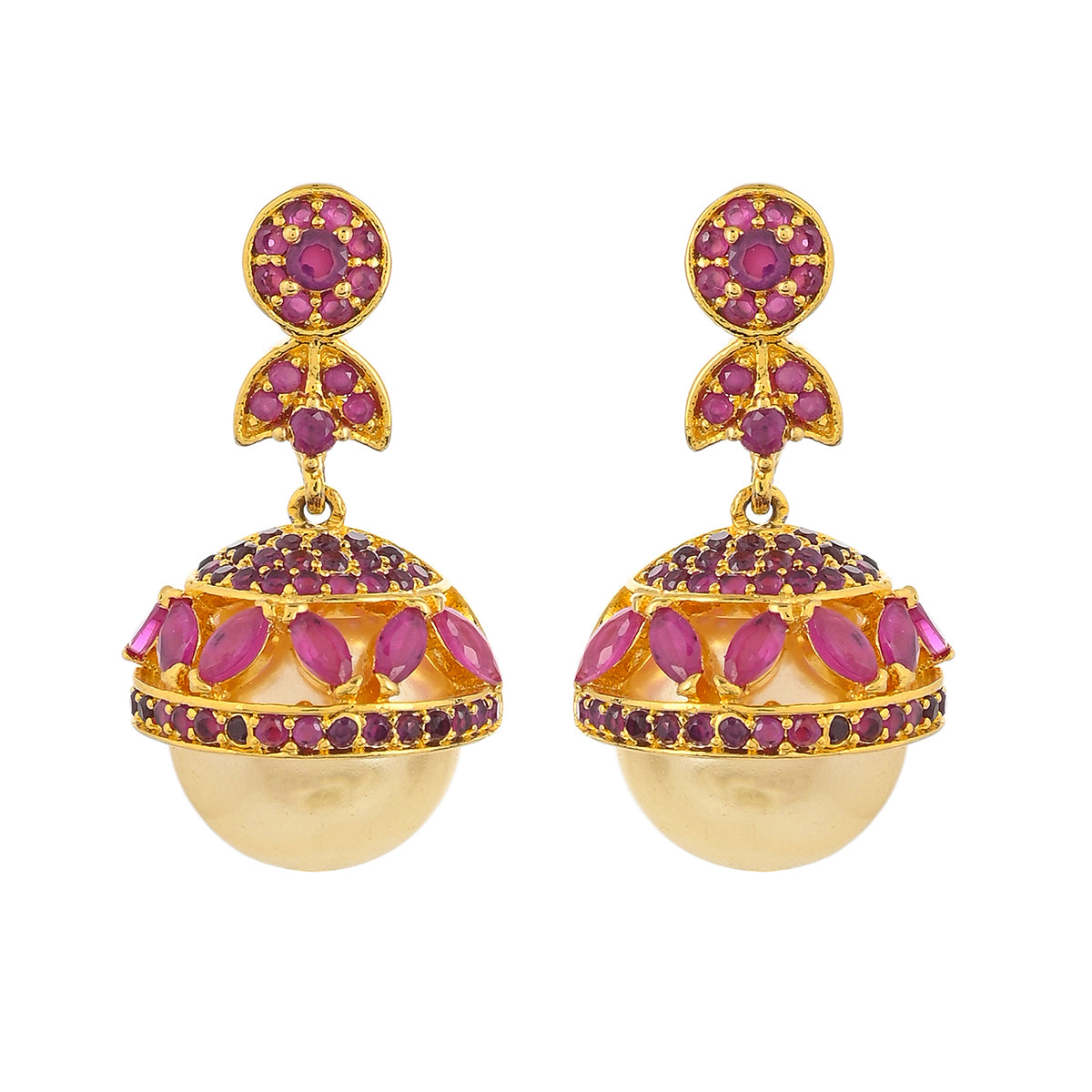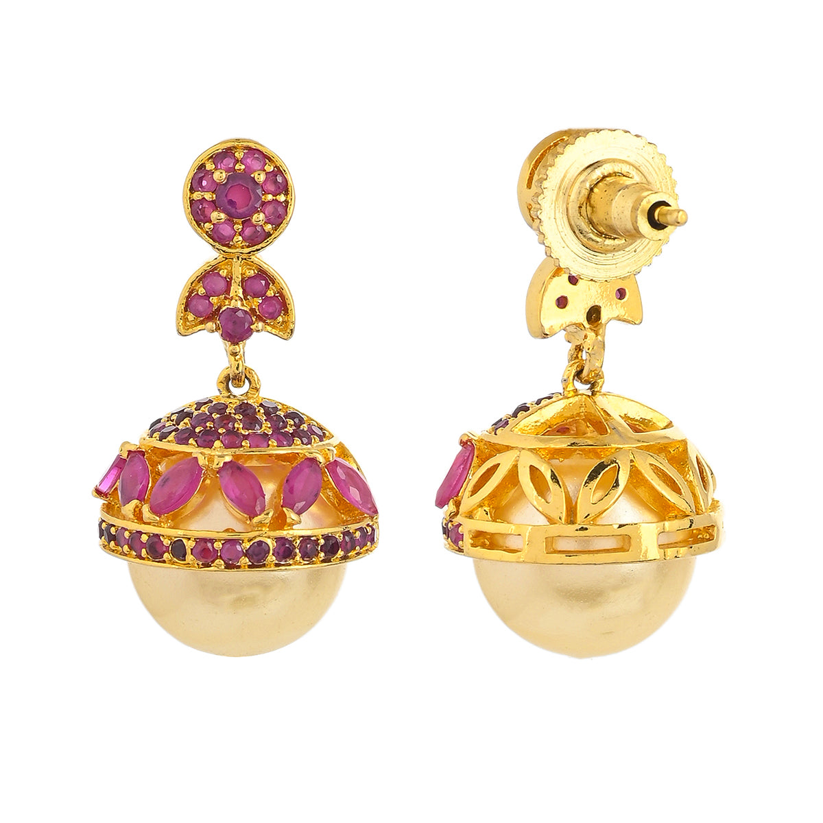 American Diamond CZ Traditional Gold Plated Red Brass Jhumka Earrings for Women