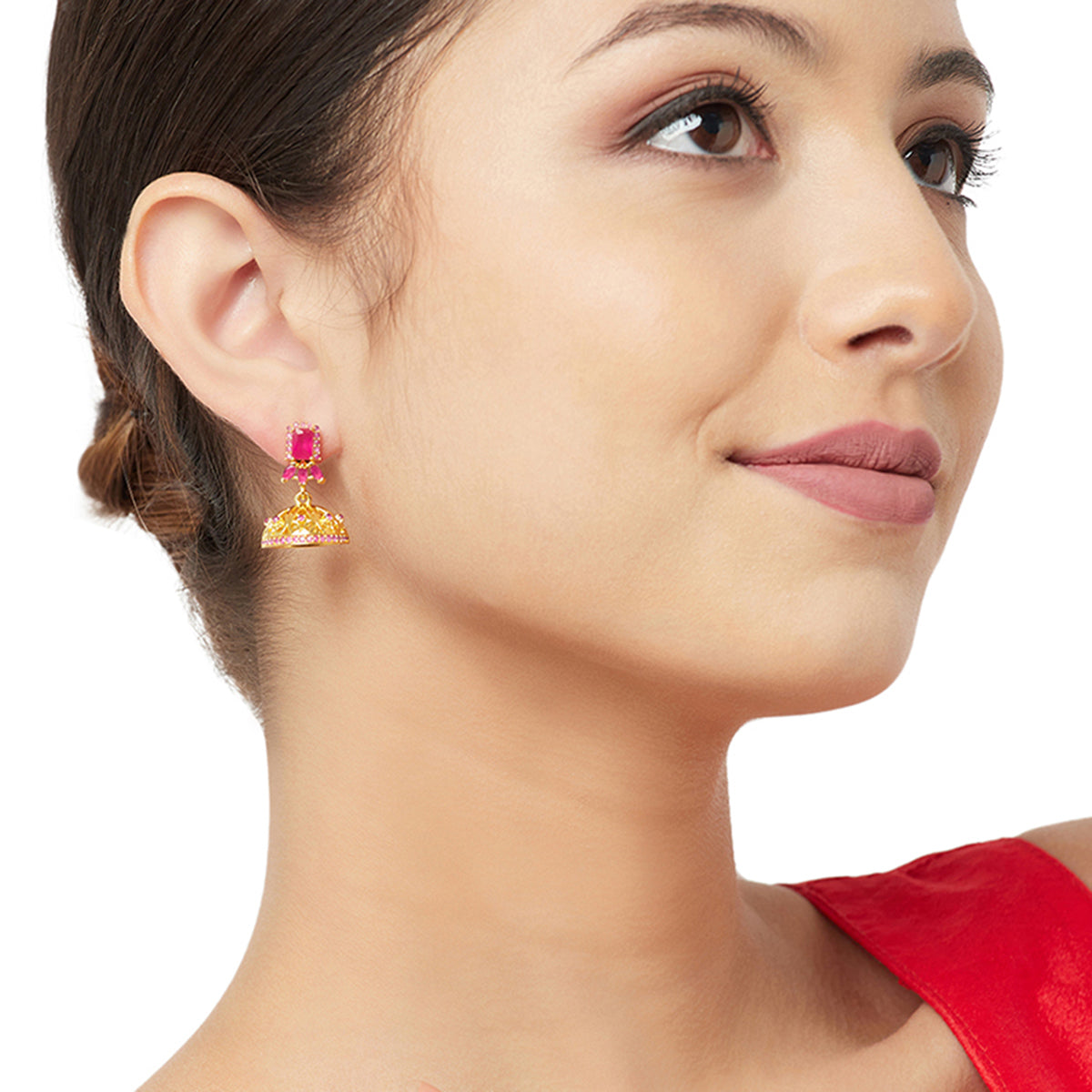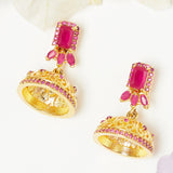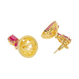 American Diamond CZ Traditional Gold Plated Red Brass Jhumka Earrings for Women