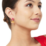 The studs in this piece is in itself a thing of beauty. Get this gold plated jhumki style earrings with ruby like semi-precious stones if you are in the mood for something classy and want to add a splash of colors to your wardrobe.