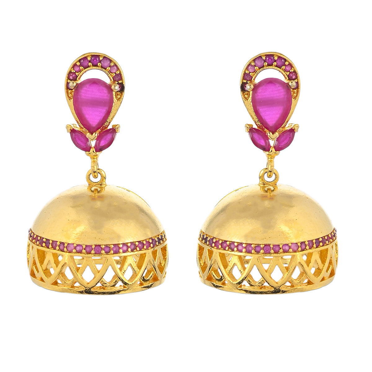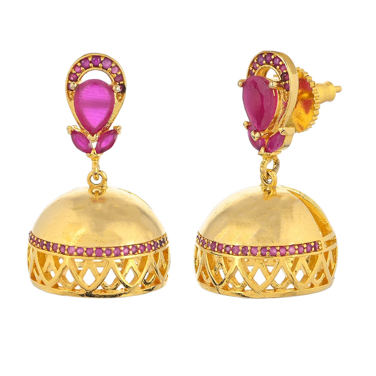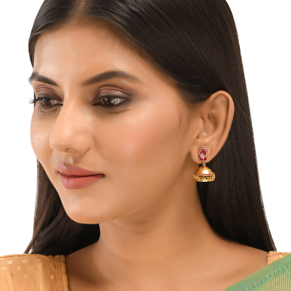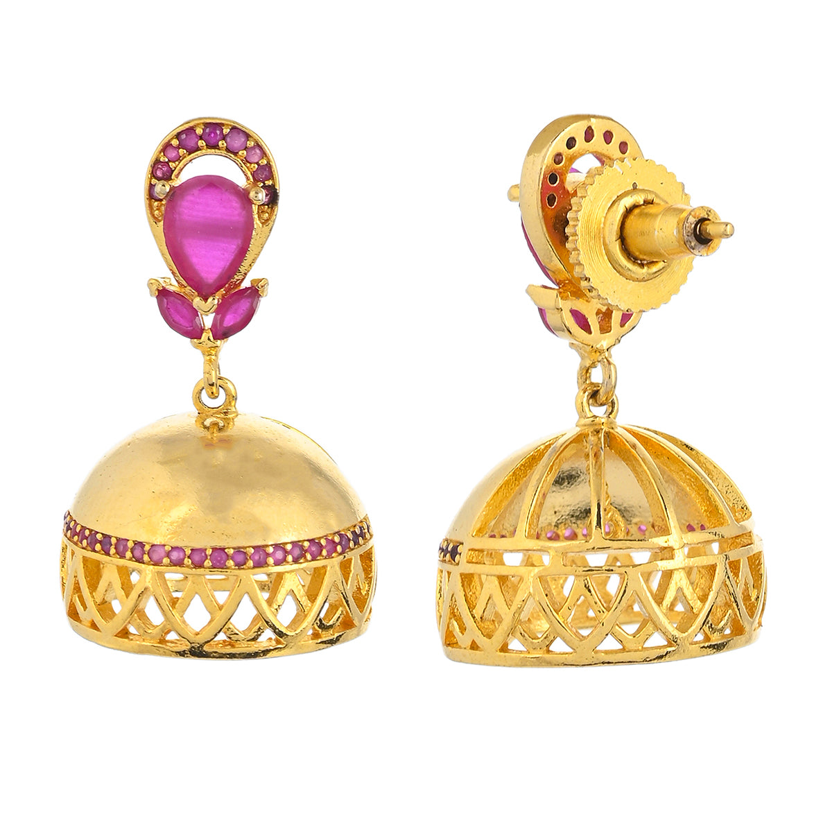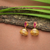 CZ Traditional Gold Plated Red Jhumka Earrings