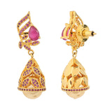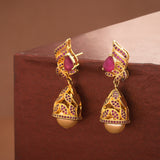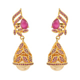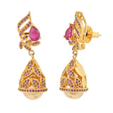 CZ Traditional Gold Plated Red Jhumka Earrings