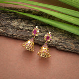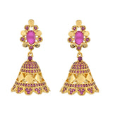 CZ Traditional Gold Plated Red Jhumka Earrings