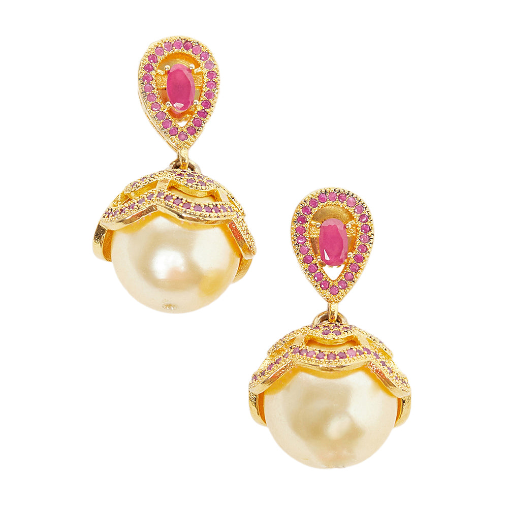CZ Traditional Gold Plated Red Jhumka Earrings