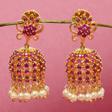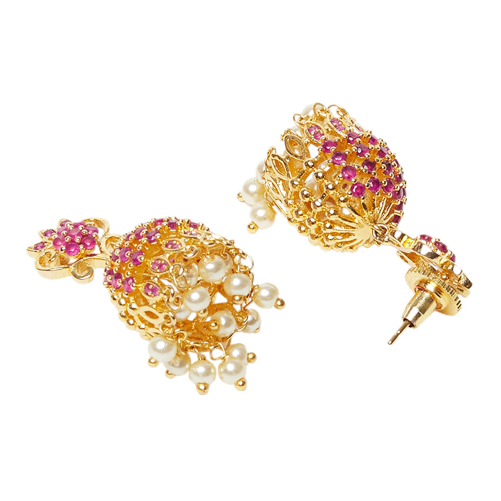 American Diamond CZ Traditional Gold Plated Red Brass Jhumka Earrings for Women