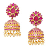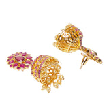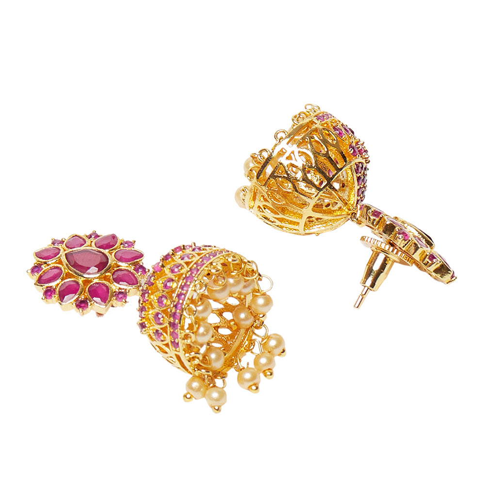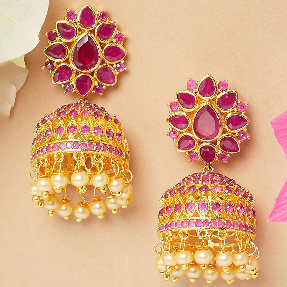American Diamond CZ Traditional Gold Plated Red Brass Jhumka Earrings for Women