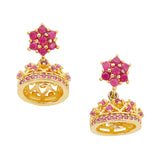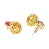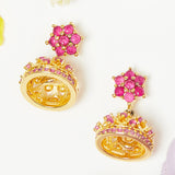American Diamond CZ Traditional Gold Plated Red & Green Brass Jhumka Earrings for Women