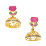 CZ Traditional Gold Plated Red & Green Jhumka Earrings