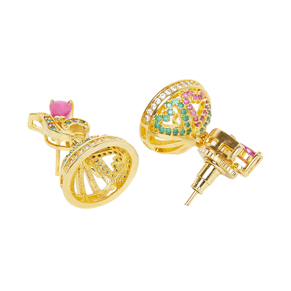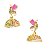 American Diamond CZ Traditional Gold Plated Red & Green Brass Jhumka Earrings for Women
