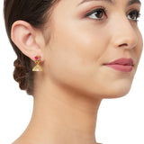 If you are looking for something simple and minimalistic to go with your college outfit to wear for your ethnic day, you should probably stop here and add this to cart! The red colored semi precious stone is definitely the stand out factor when it comes to this pair of Brass earrings plated in gold. Pair this with complementary colors and you are good to slay the day in style.