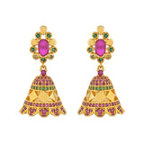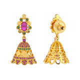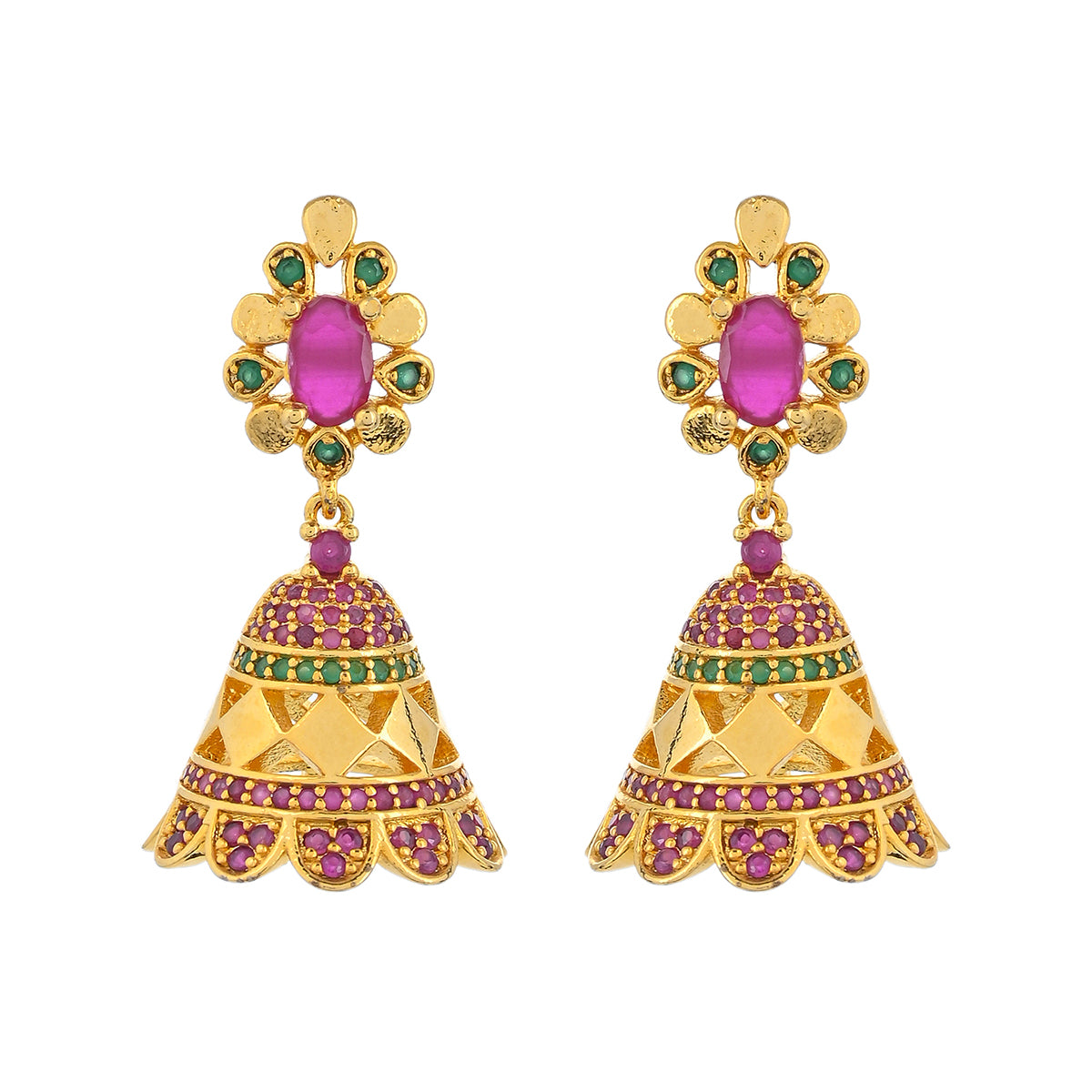 CZ Traditional Gold Plated Red & Green Jhumka Earrings