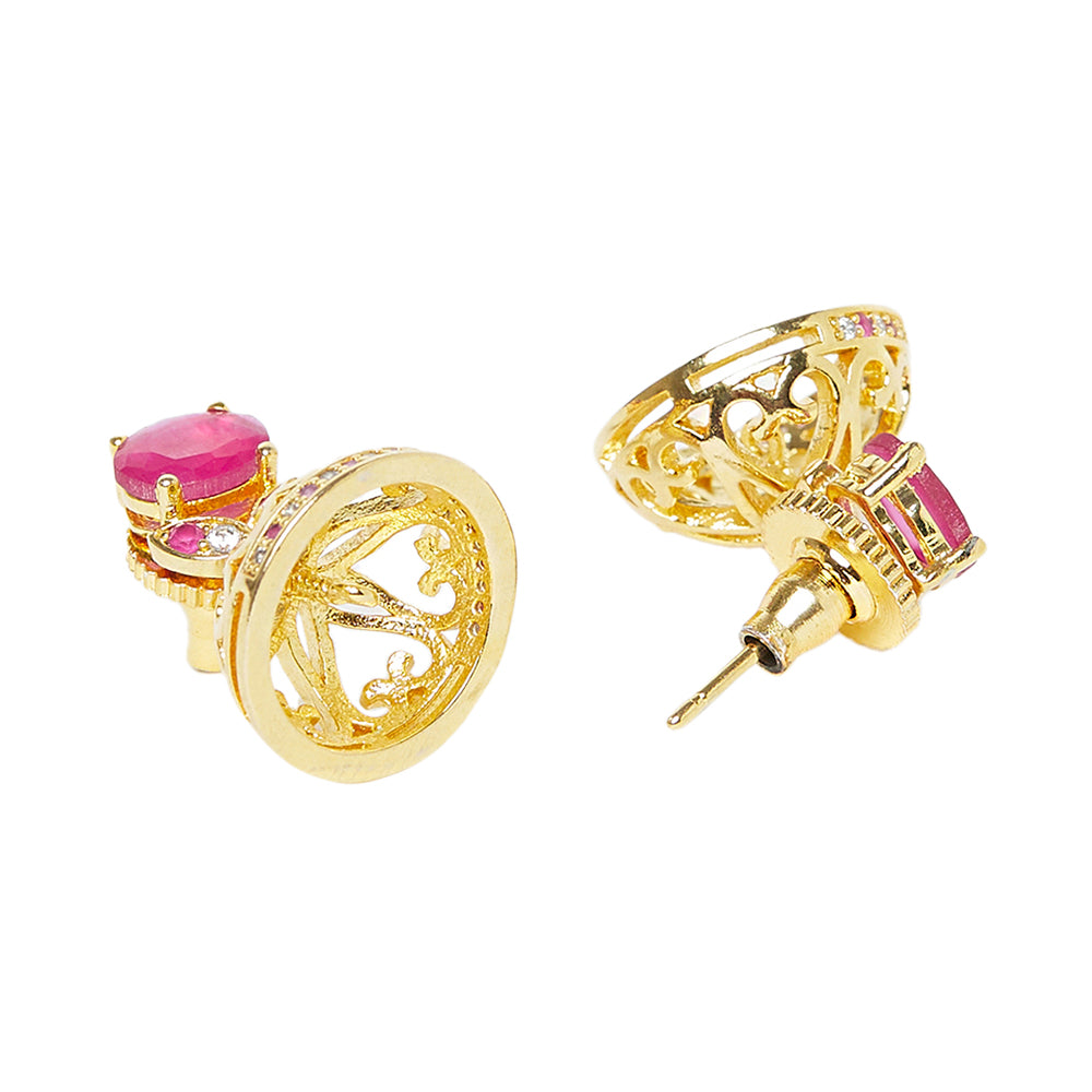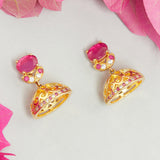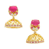 American Diamond CZ Traditional Gold Plated Red & White Brass Jhumka Earrings for Women