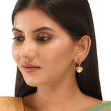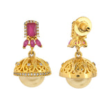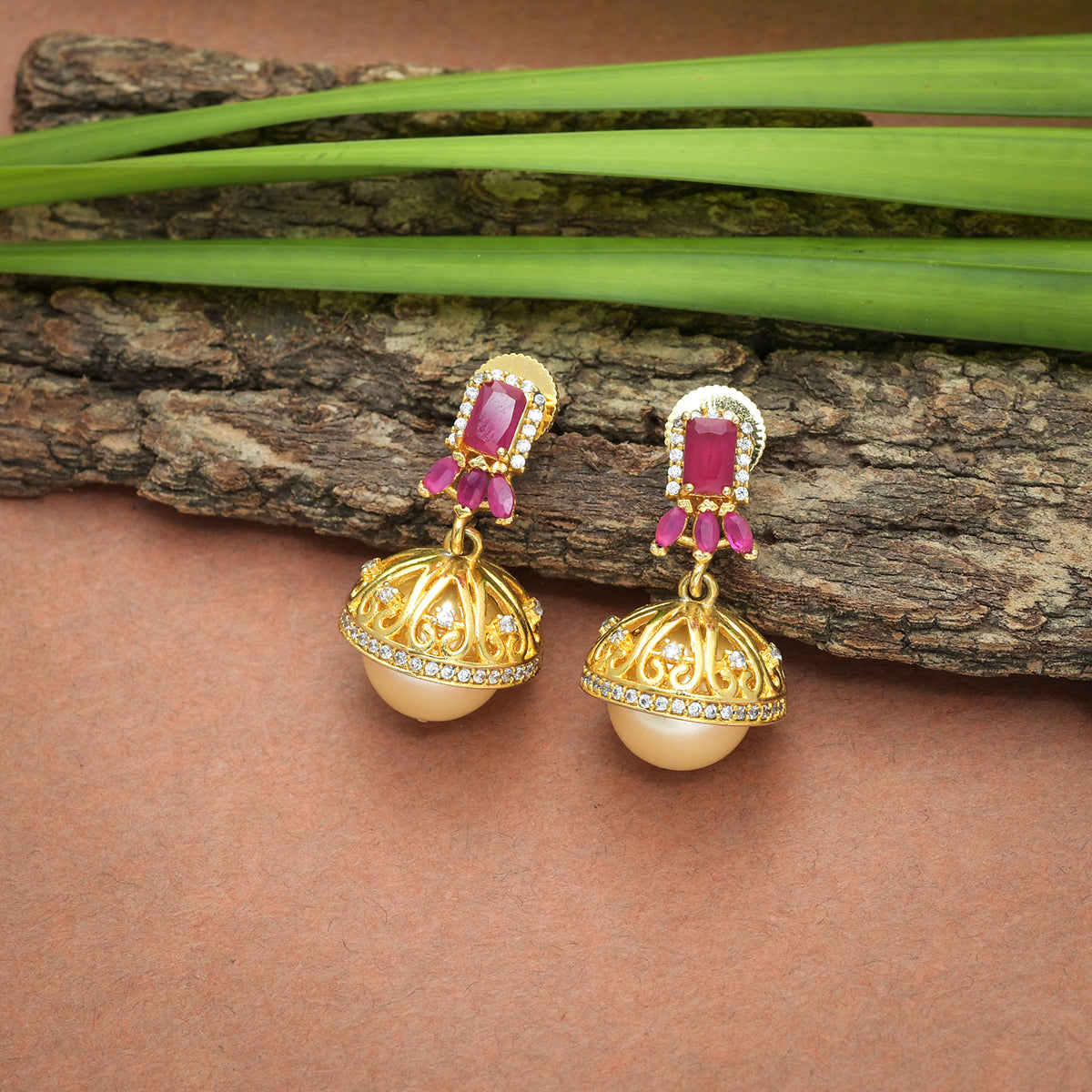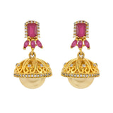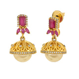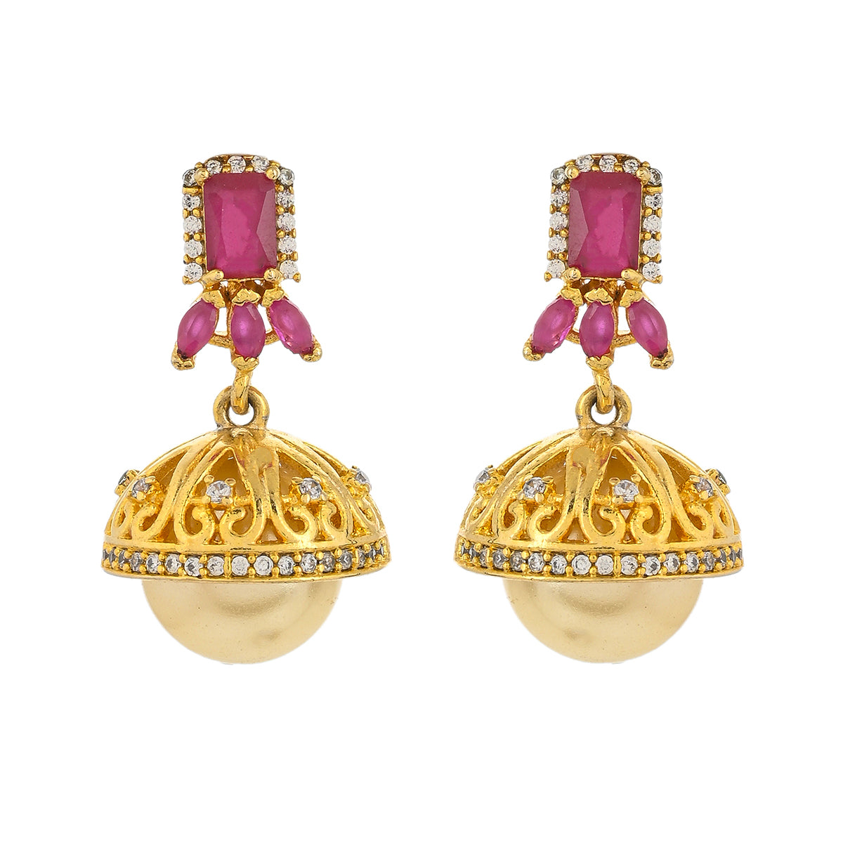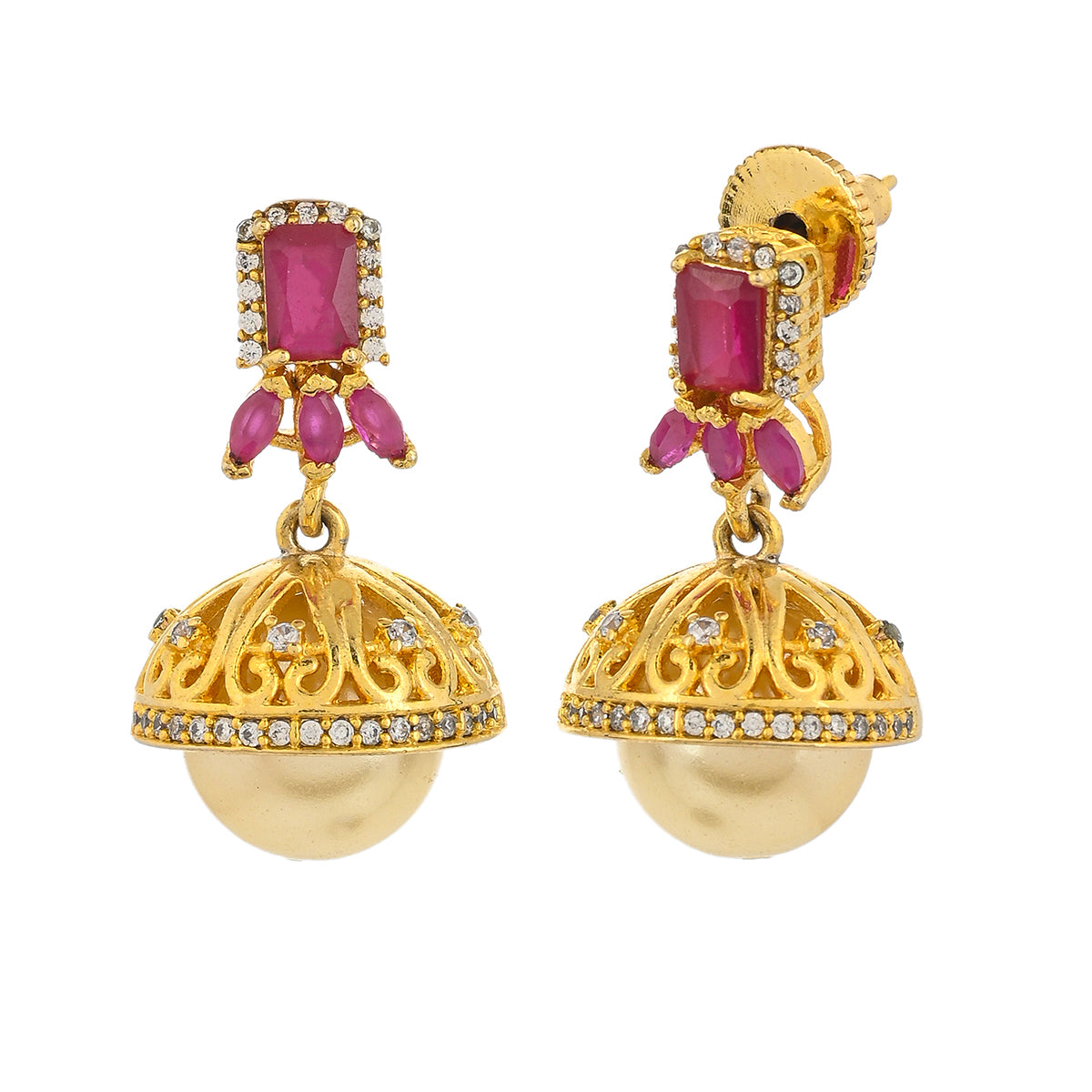 CZ Traditional Gold Plated Red & White Jhumka Earrings