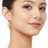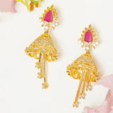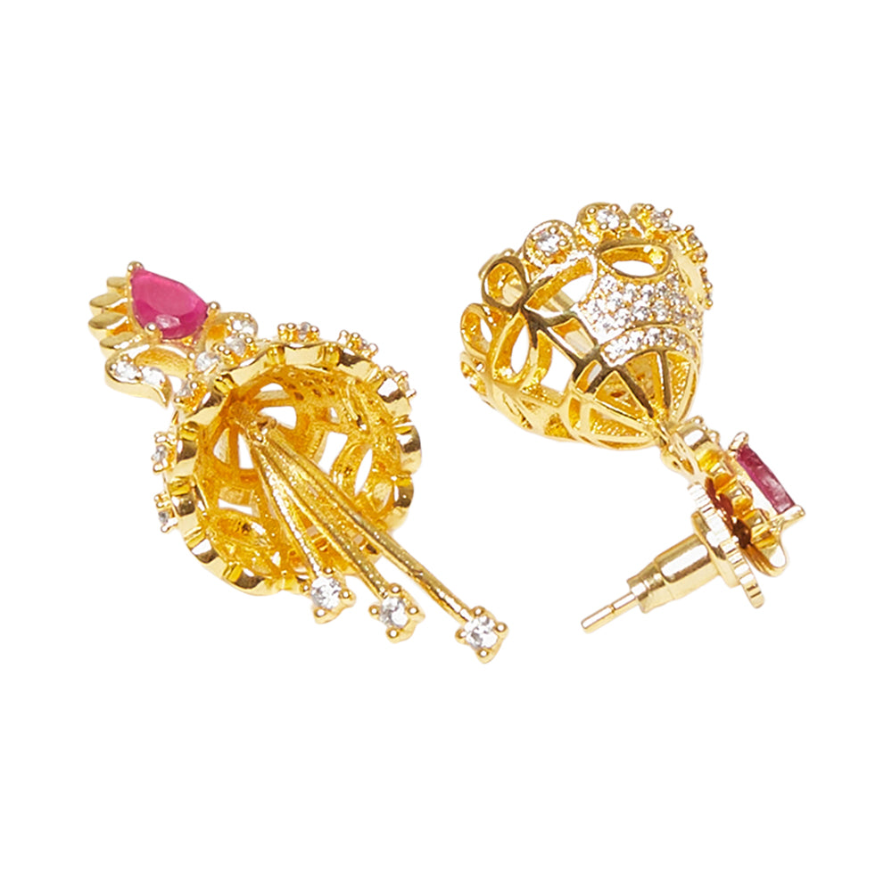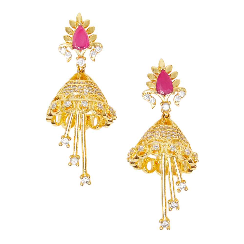 American Diamond CZ Traditional Gold Plated Red & White Brass Jhumka Earrings for Women