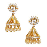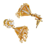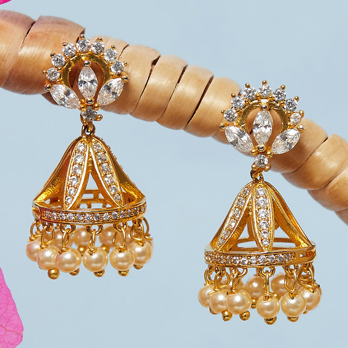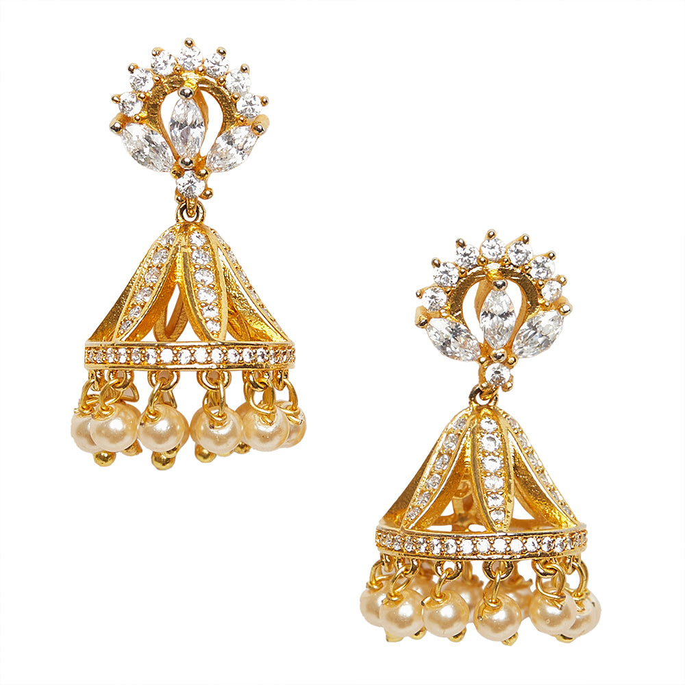 American Diamond CZ Traditional Gold Plated White Brass Jhumka Earrings for Women
