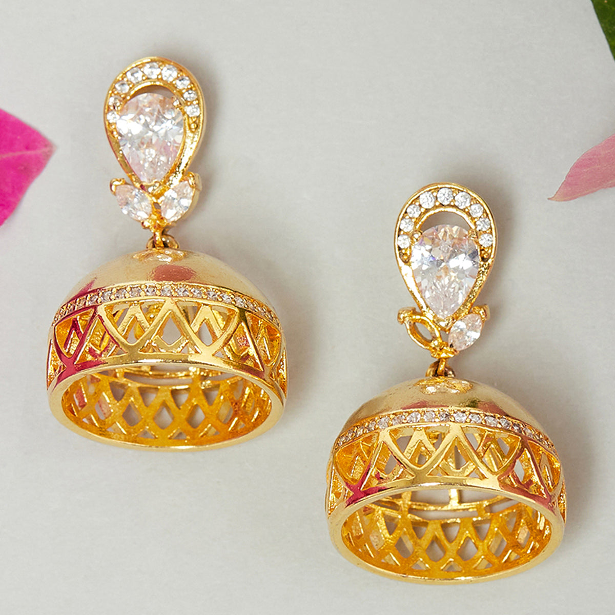 If you are looking for something simple and minimalistic to go with your college outfit to wear for your ethnic day, you should probably stop here and add this to cart! The white colored semi precious stone is definitely the stand out factor when it comes to this pair of Brass earrings plated in gold. Pair this with complementary colors and you are good to slay the day in style.