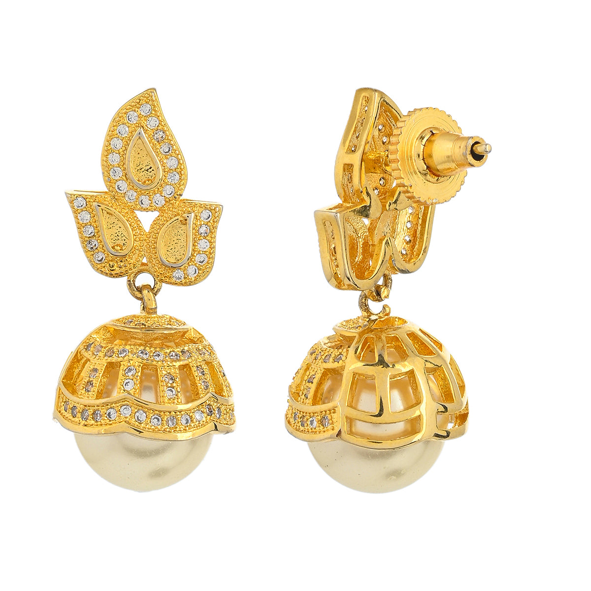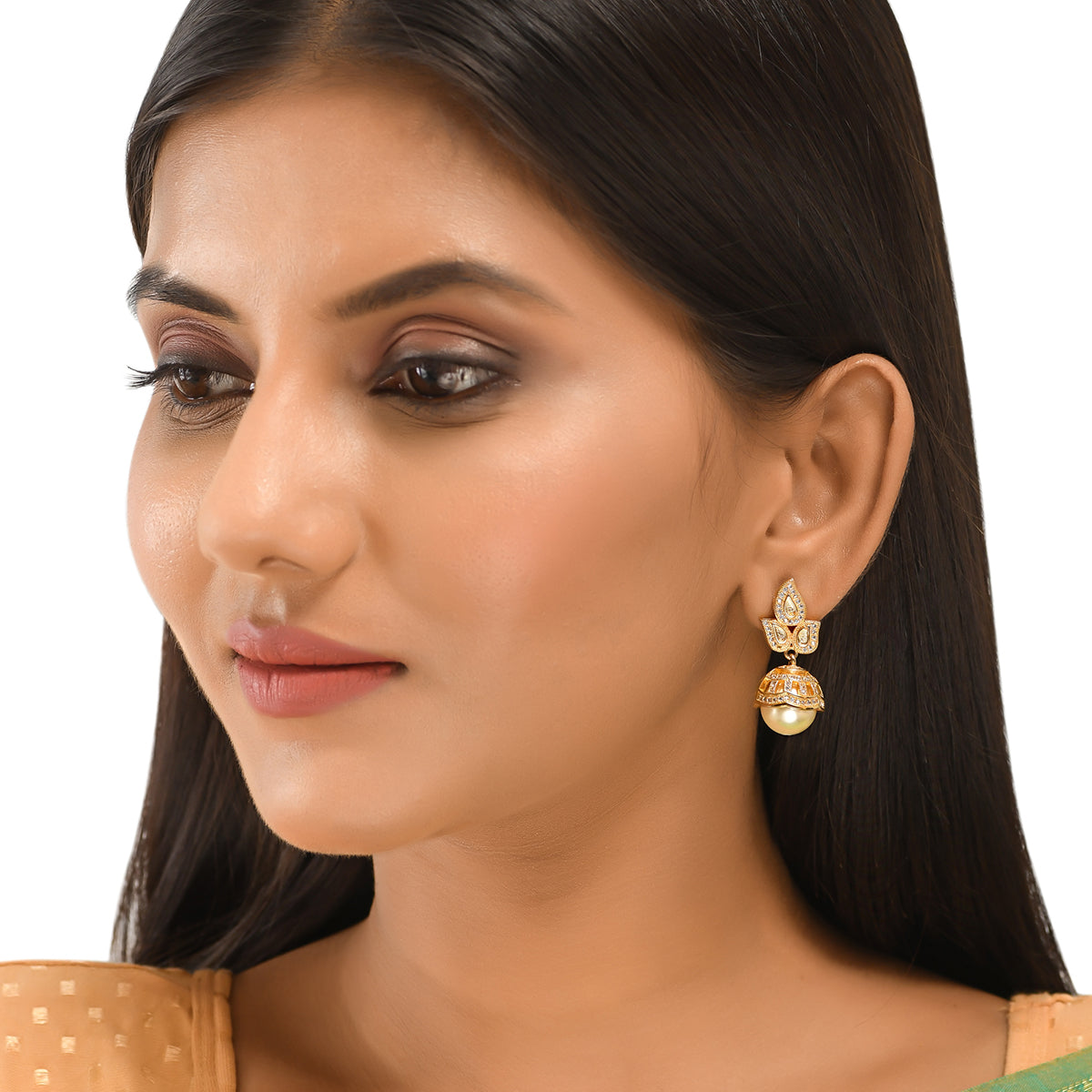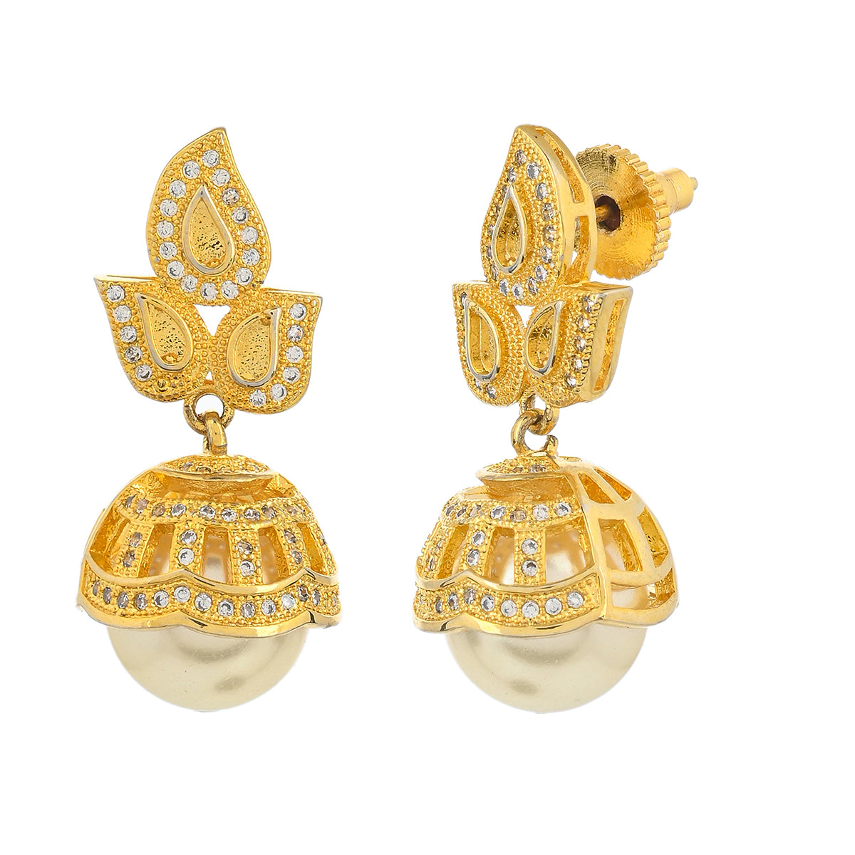 American Diamond CZ Traditional Gold Plated White Brass Jhumka Earrings for Women