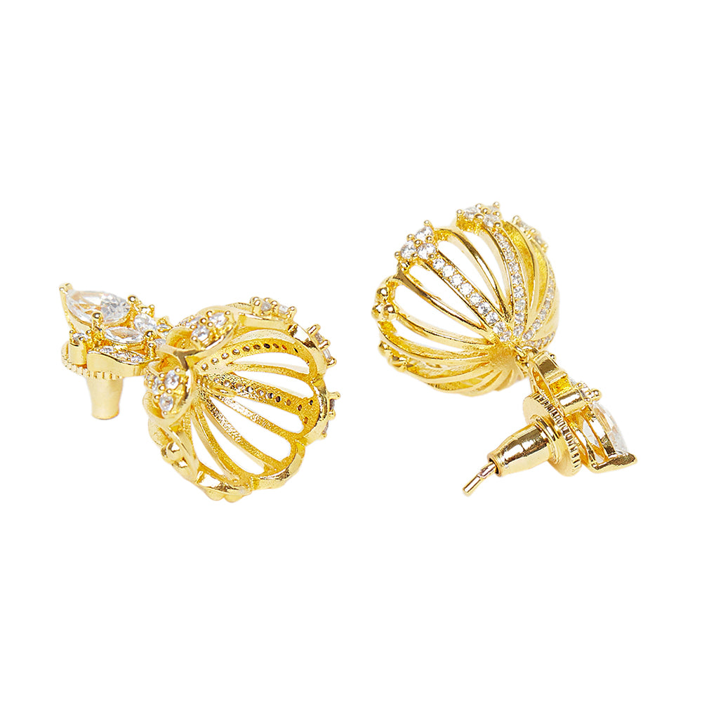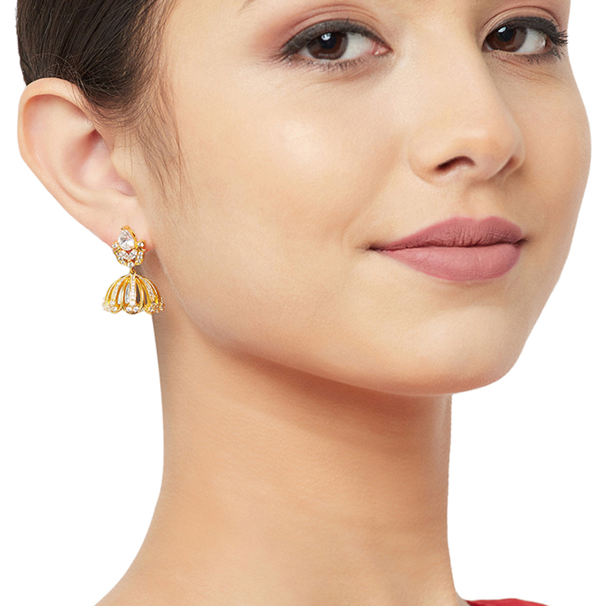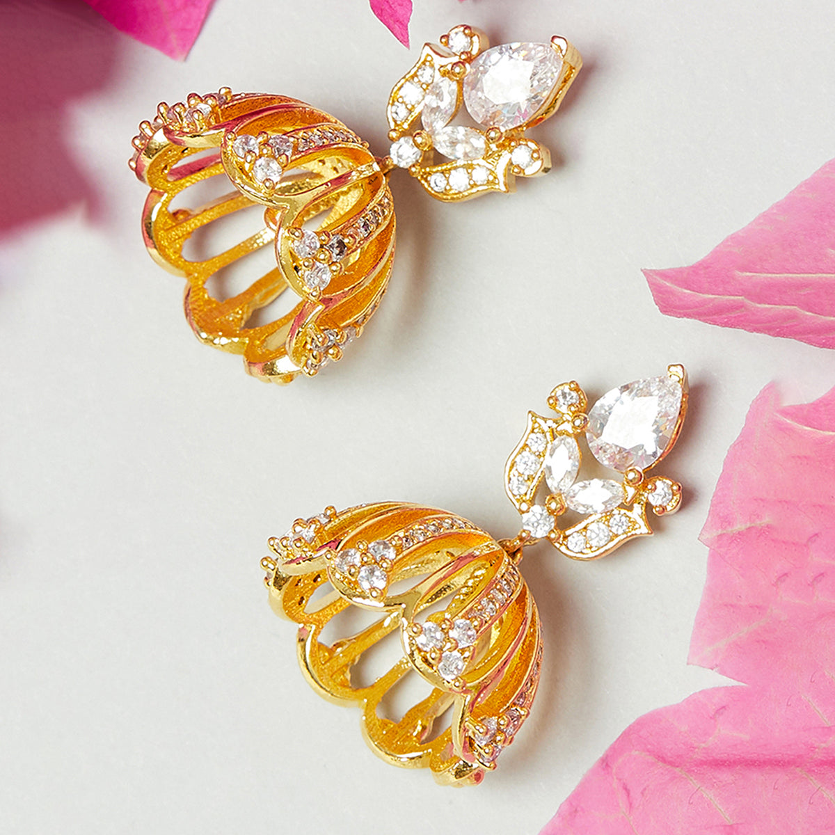 American Diamond CZ Traditional Gold Plated White Brass Jhumka Earrings for Women