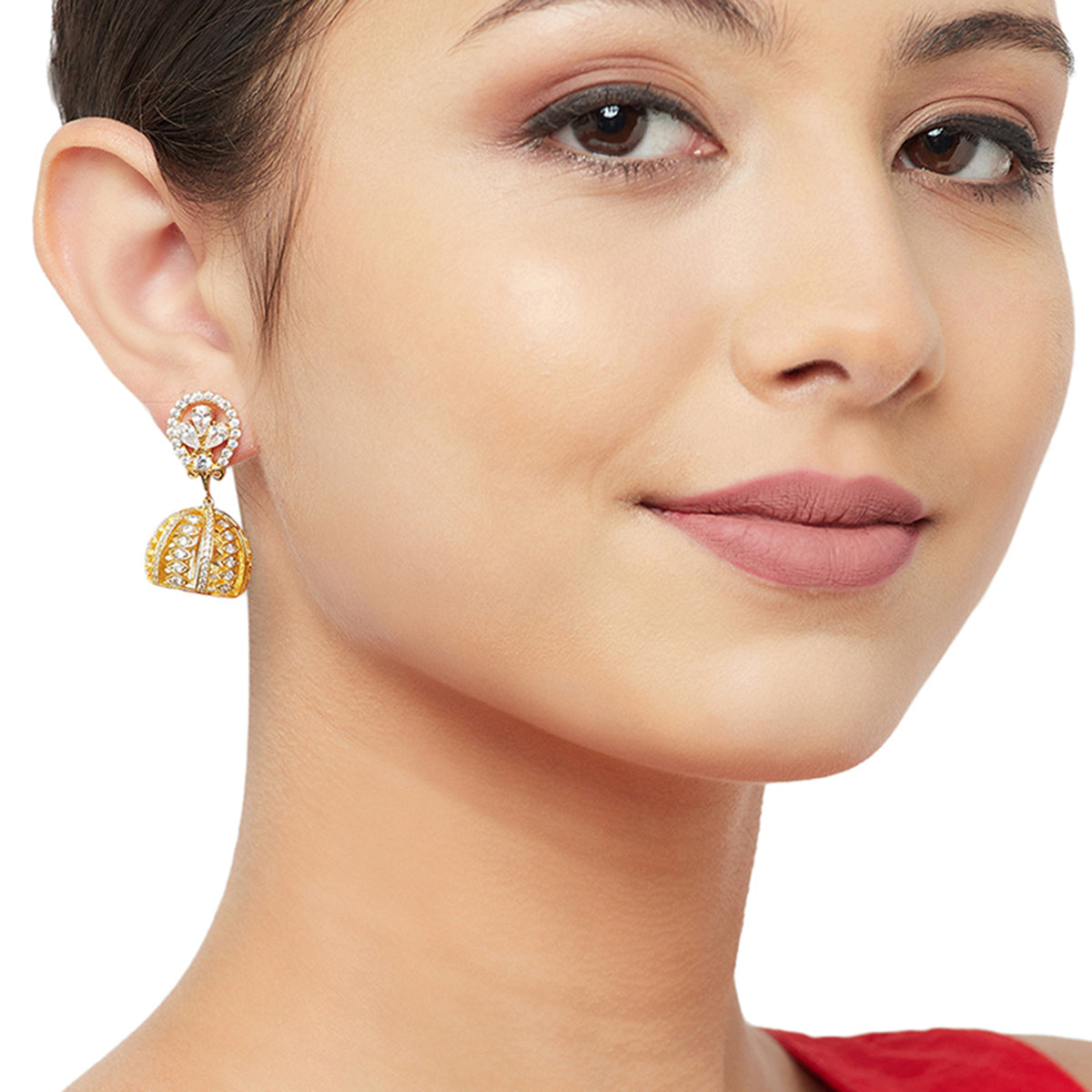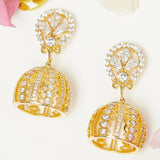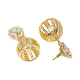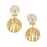 American Diamond CZ Traditional Gold Plated White Brass Jhumka Earrings for Women