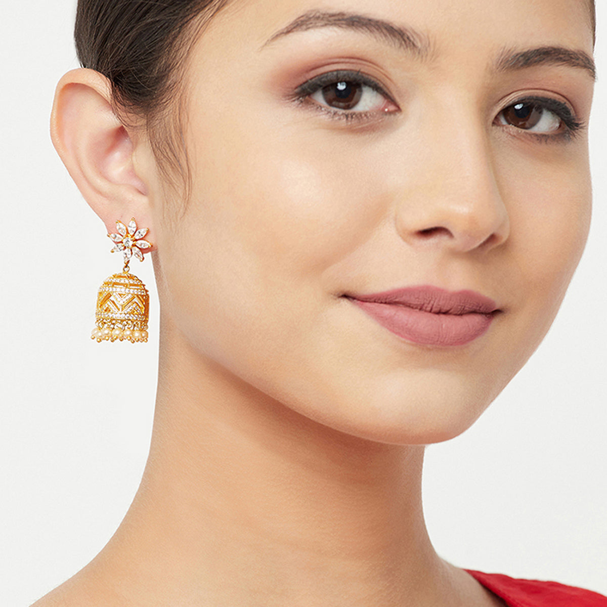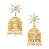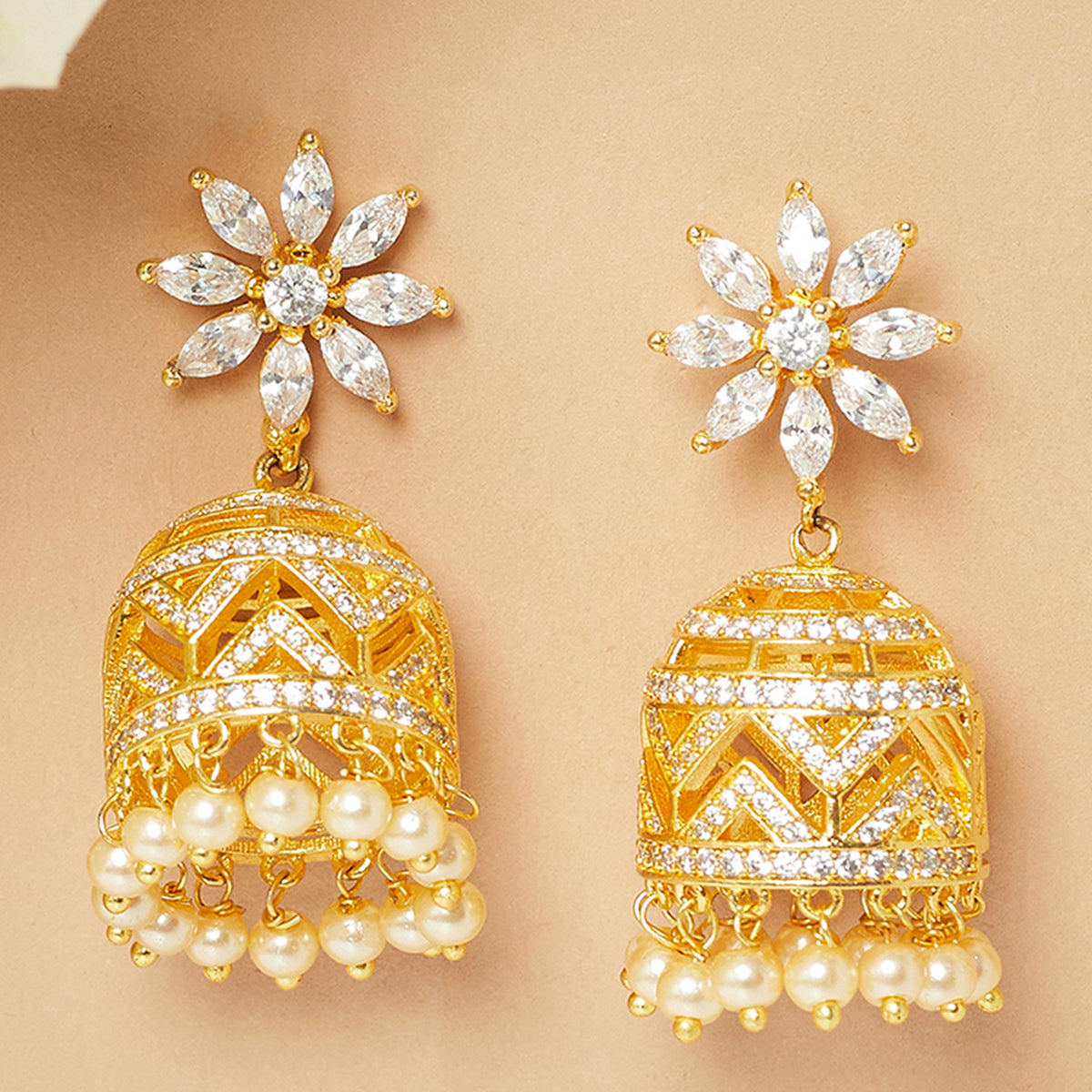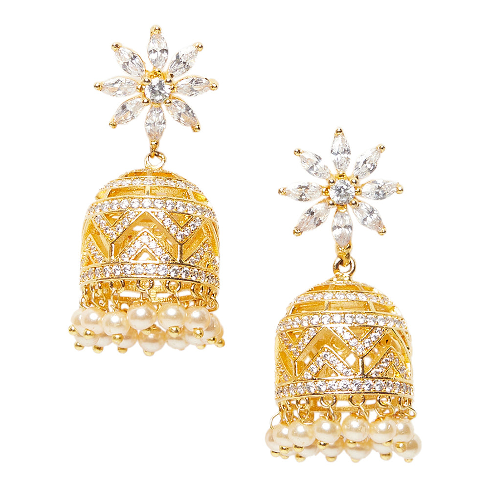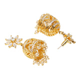 American Diamond CZ Traditional Gold Plated White Brass Jhumka Earrings for Women