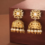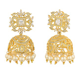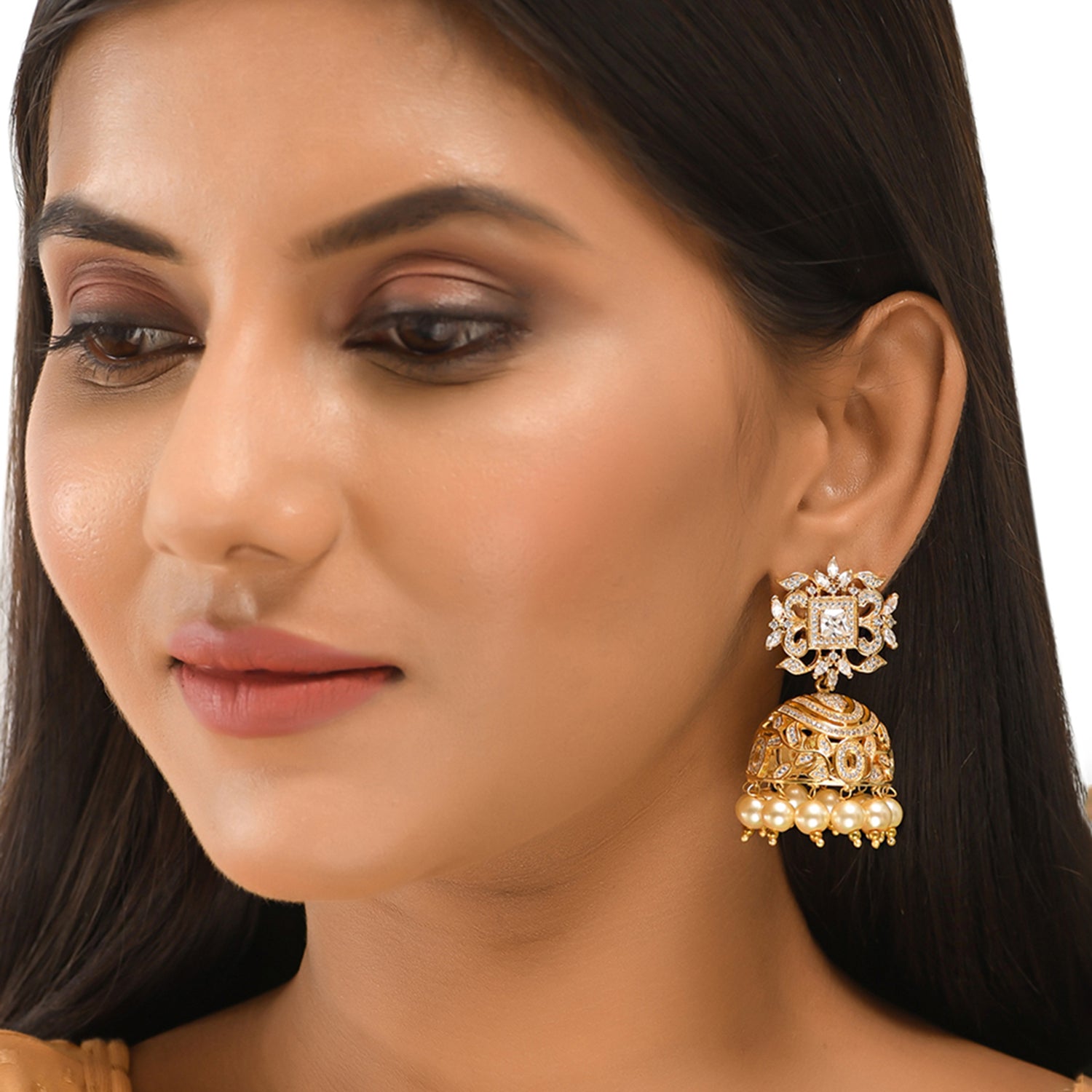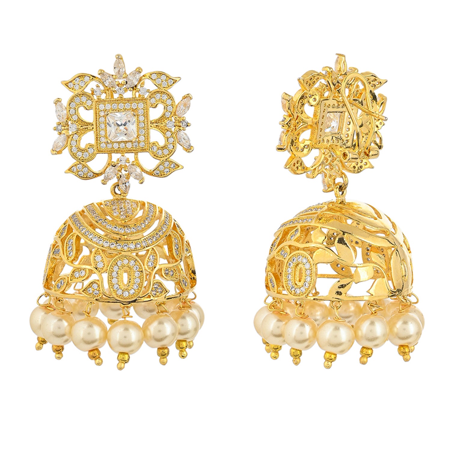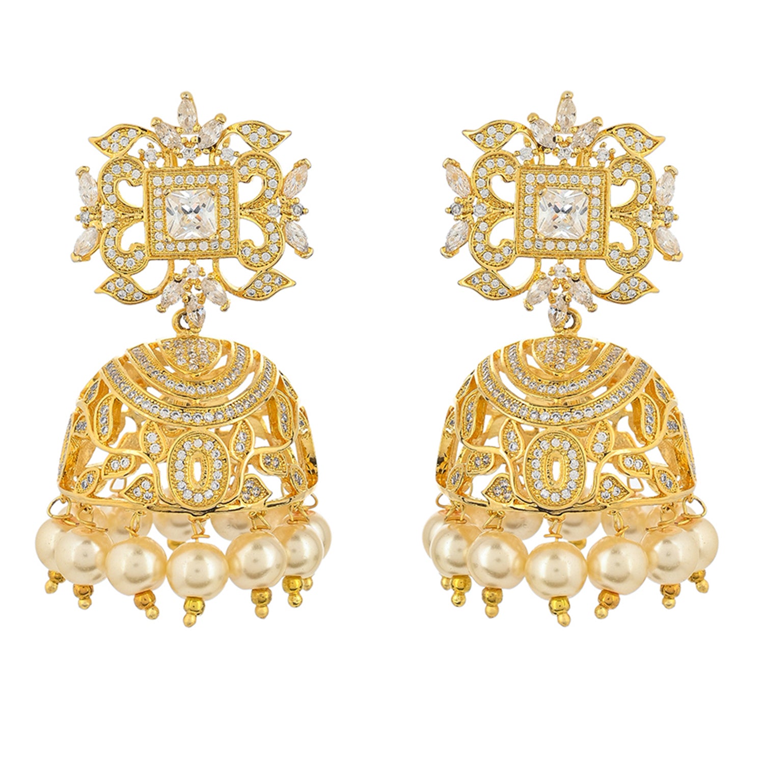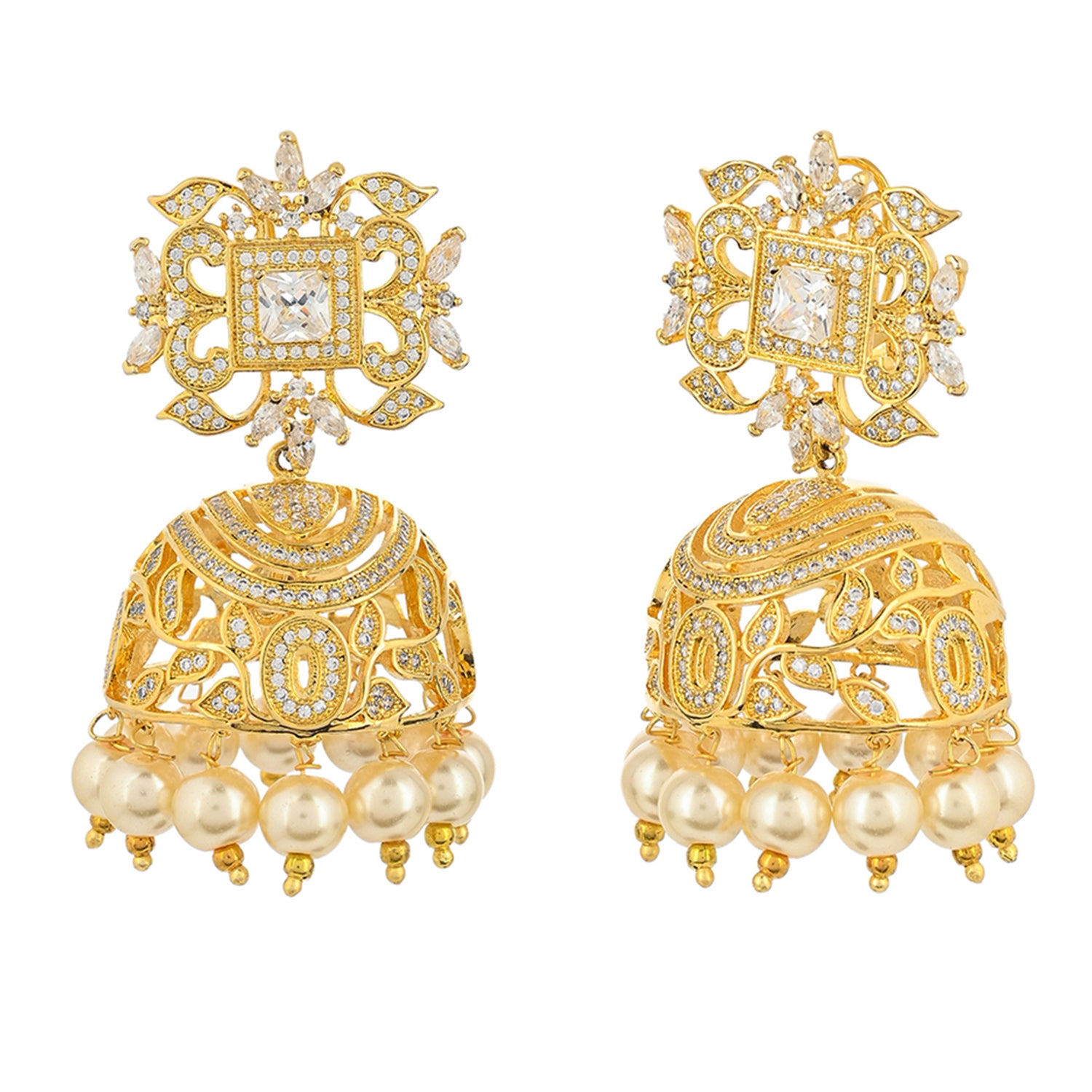 American Diamond CZ Traditional Gold Plated White Brass Jhumka Earrings for Women