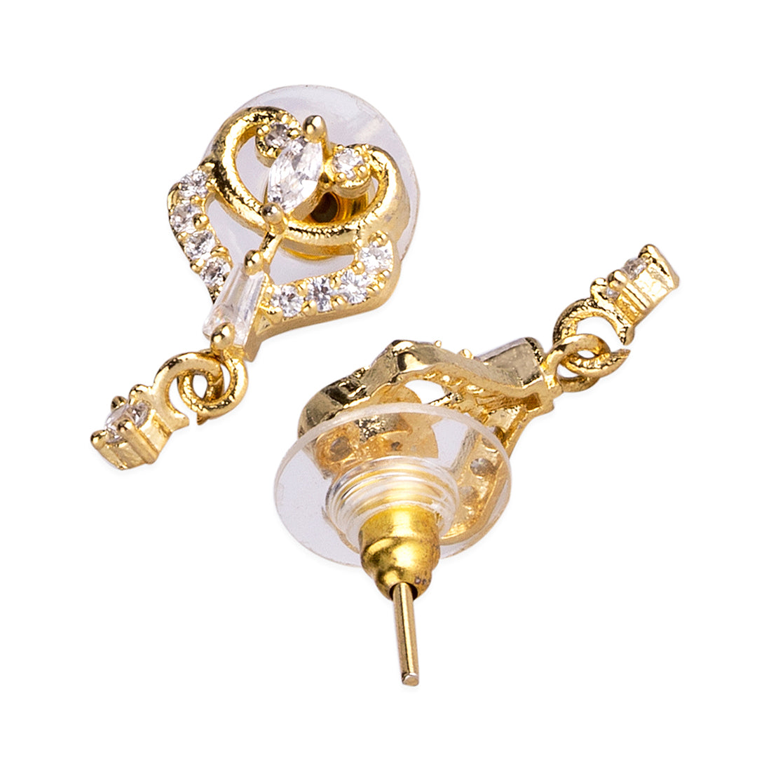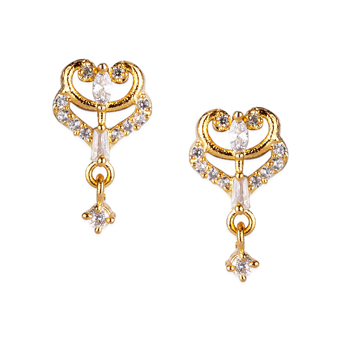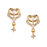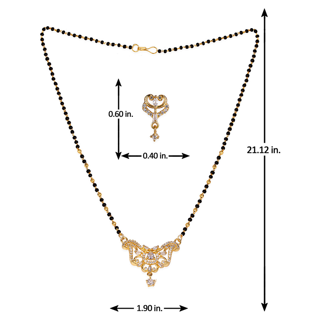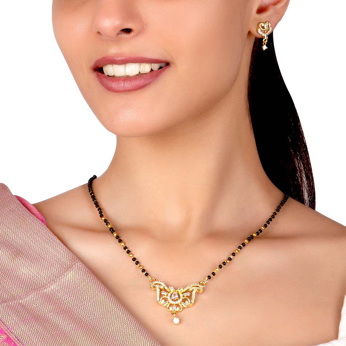 American Diamond CZ Traditional Golden Brass Black Beaded Mangalsutra with Earrings